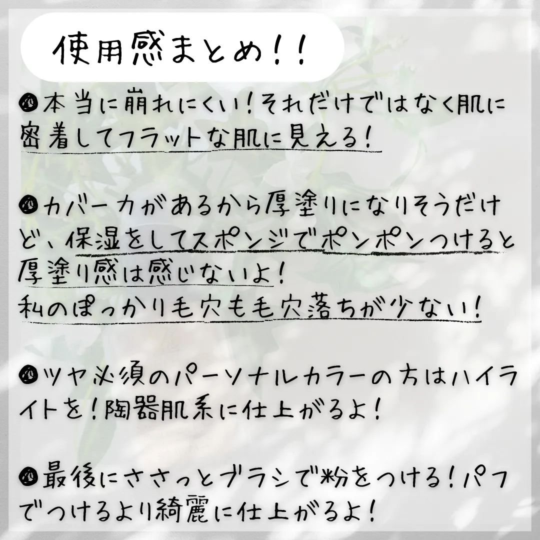 | ファンデーションランキング第18位 | みずみずしいテクスチャーで すぅ〜と伸びが良く、肌になじみやすく 厚塗り感が出にくい✌🏻 | 詳細を見る | |