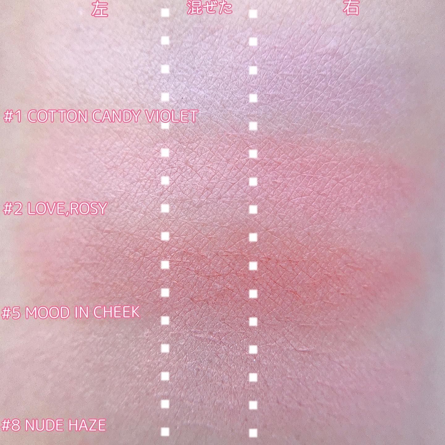透明感が爆誕するブルベ向きカラー!ピンクも明るめで全体的に使いやすく早速お気に入り! このアイシャドウプチプラの中でお気に入りなのでこれからも新作でたら買ってしまうと思いますw ぷにっと質感が病みつきなバズりフェイスカラーのローズピンク系! 02はどちらかと言うとブルベ向きカラーではあるもののなじみがよく万人に使えるカラー!