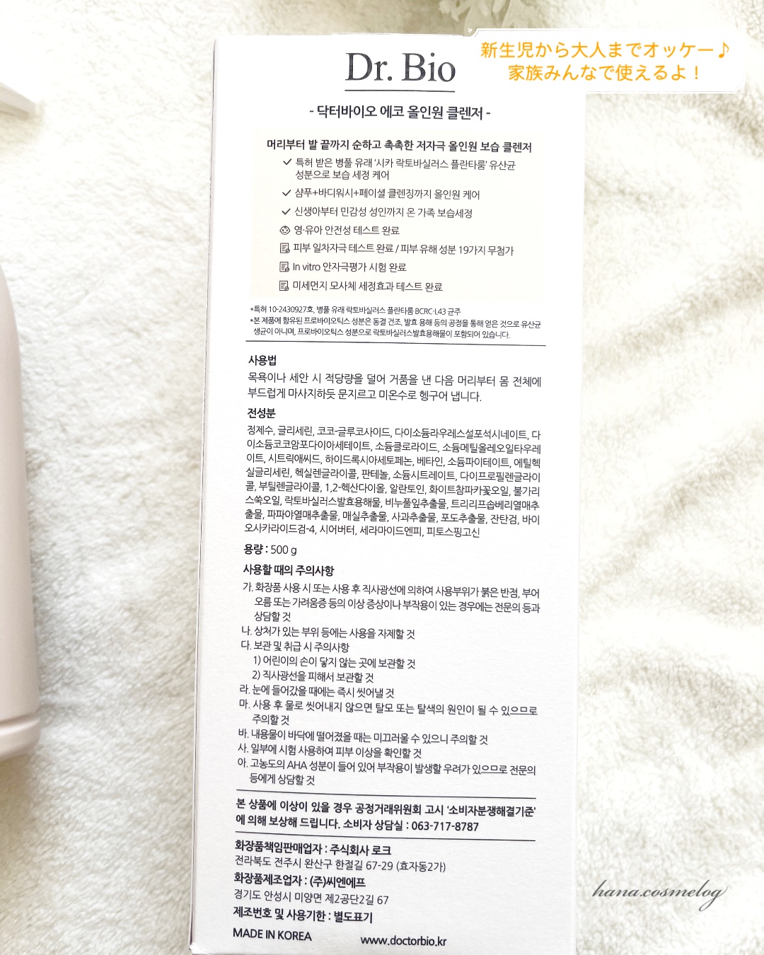 - Dr.bio製品は皮膚本来の力をサポートする植物由来成分で作られ、新生児から敏感肌の大人まで家族みんなが一緒に使えます。頭からつま先まで一度にしっとりした保湿バランス、オールインワン製品でヘアから、ボディ、フェイシャルクレンジングまで可能、ツッパリ感が少なくしっとりと仕上がります。