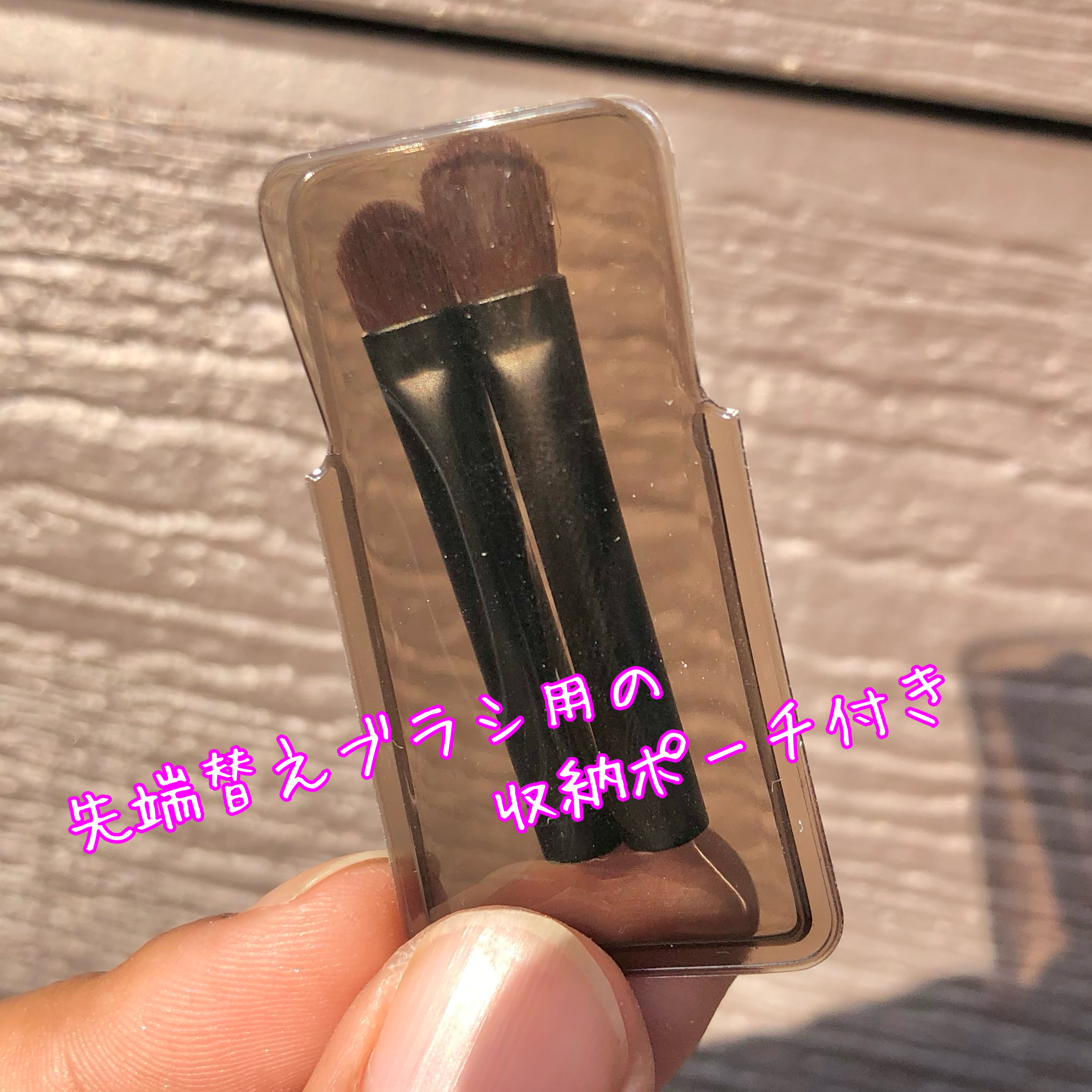 - 〈ブラシヘッドが交換可能〉 1本で3種のブラシヘッドが取り付け可能。いろいろなブラシヘッドを付け替えられるだけでなく、毛先を交換することで本体をより長くご使用いただくことができます。またブラシヘッドを取り外せることで、持ち運びにも便利。お手入れも簡単です。 〈キャップ、ポーチ付き〉 キャップ付きで毛先を収納できるため、ポーチの中も汚れる心配がありません。キャップで保護することで毛質の劣化も防ぎます。また外したブラシ先端部を保管できるポーチが付属しています。 〈スライド式なので片手で操作可能〉 ブラシ本体はスライド式のキャップ付きで、持ち運びや保管がしやすくなっています。ブラシをスライドするだけでキャップを開けることができ、片手で扱える操作性のよさにもこだわりました。 =============== ◆セット内容 ・アイシャドウブラシ シャドウをぼかすなど広い面に使える実力派ブラシ ・ポイントシャドウブラシ 目頭や目尻などの細部の陰影づくりに ・アイブロウブラシ 毛先が斜めにカッティングされ眉を整えるときに ・ブラシ保管用ポーチ ===============