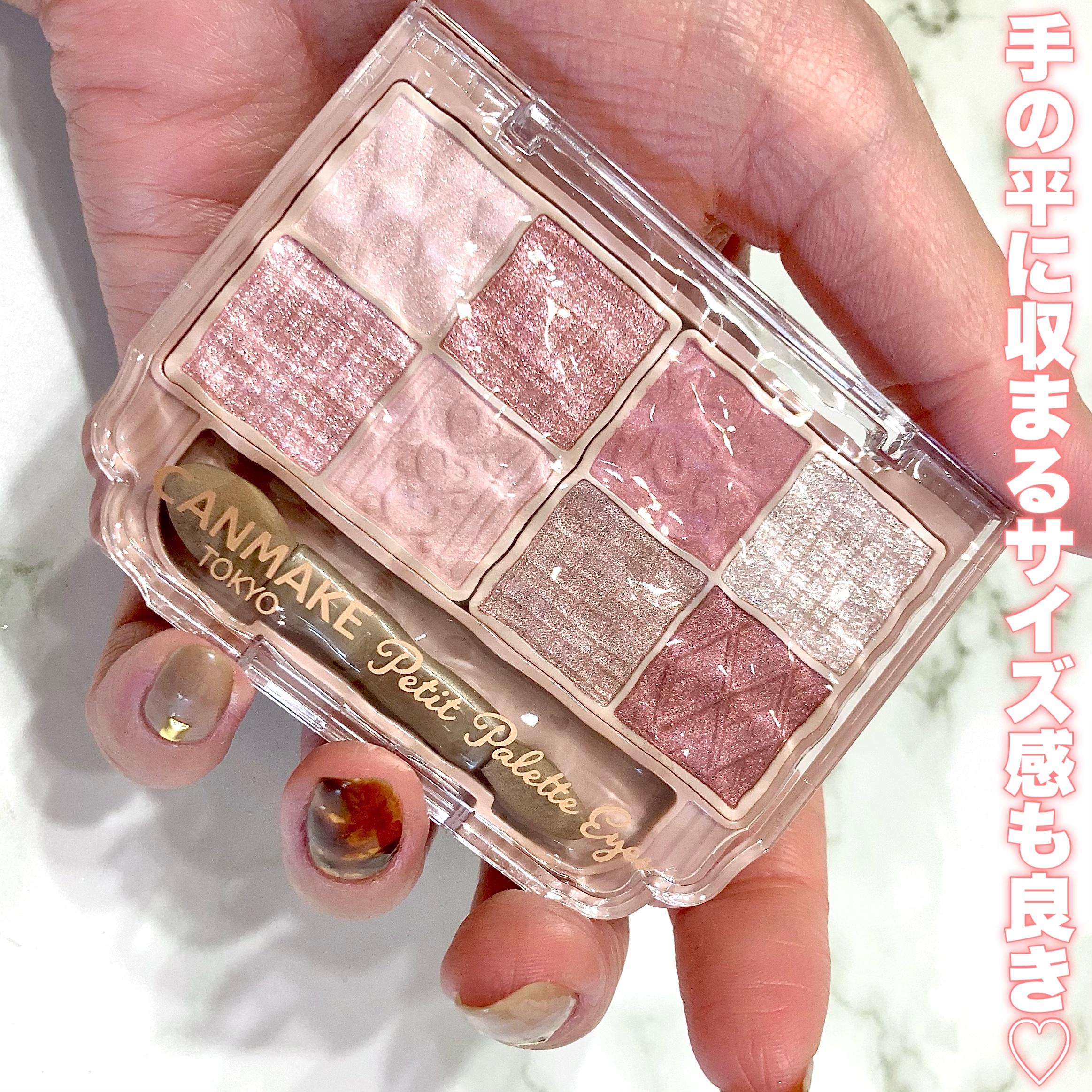 - 持ち歩ける多色パレットがキャンメイクから登場! 捨て色なしの8色入り&チップ付! 「持ち歩けること」や「外出先でもメイク直しができること」を重視した多色パレット。 持ち運びやすいサイズ感なのに、贅沢に8色入りです。 さらに便利なダブルエンドチップまで! マット×パール×ラメなど、組み合わせ方はあなたの自由! 自分好みのアイメイクを楽しめます。