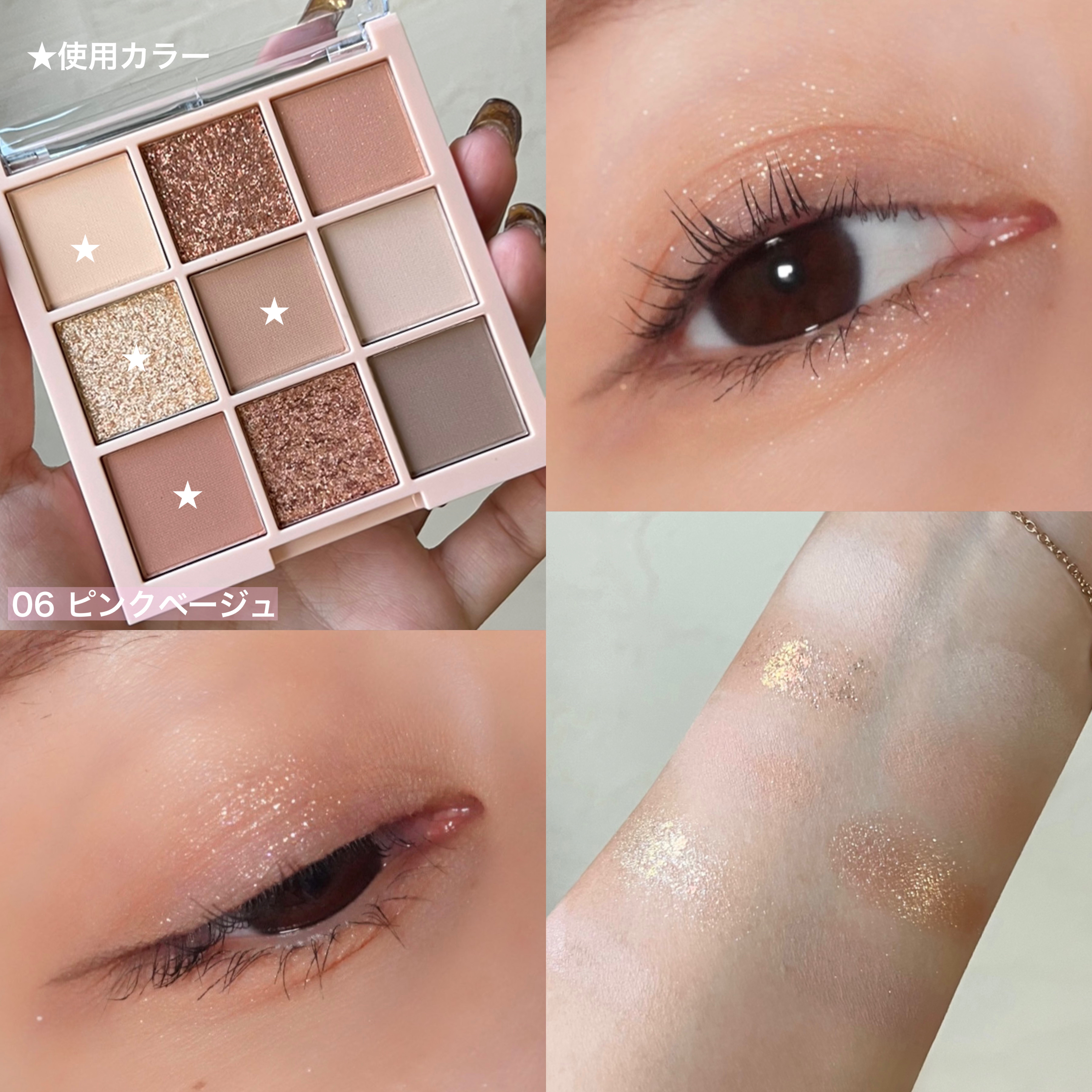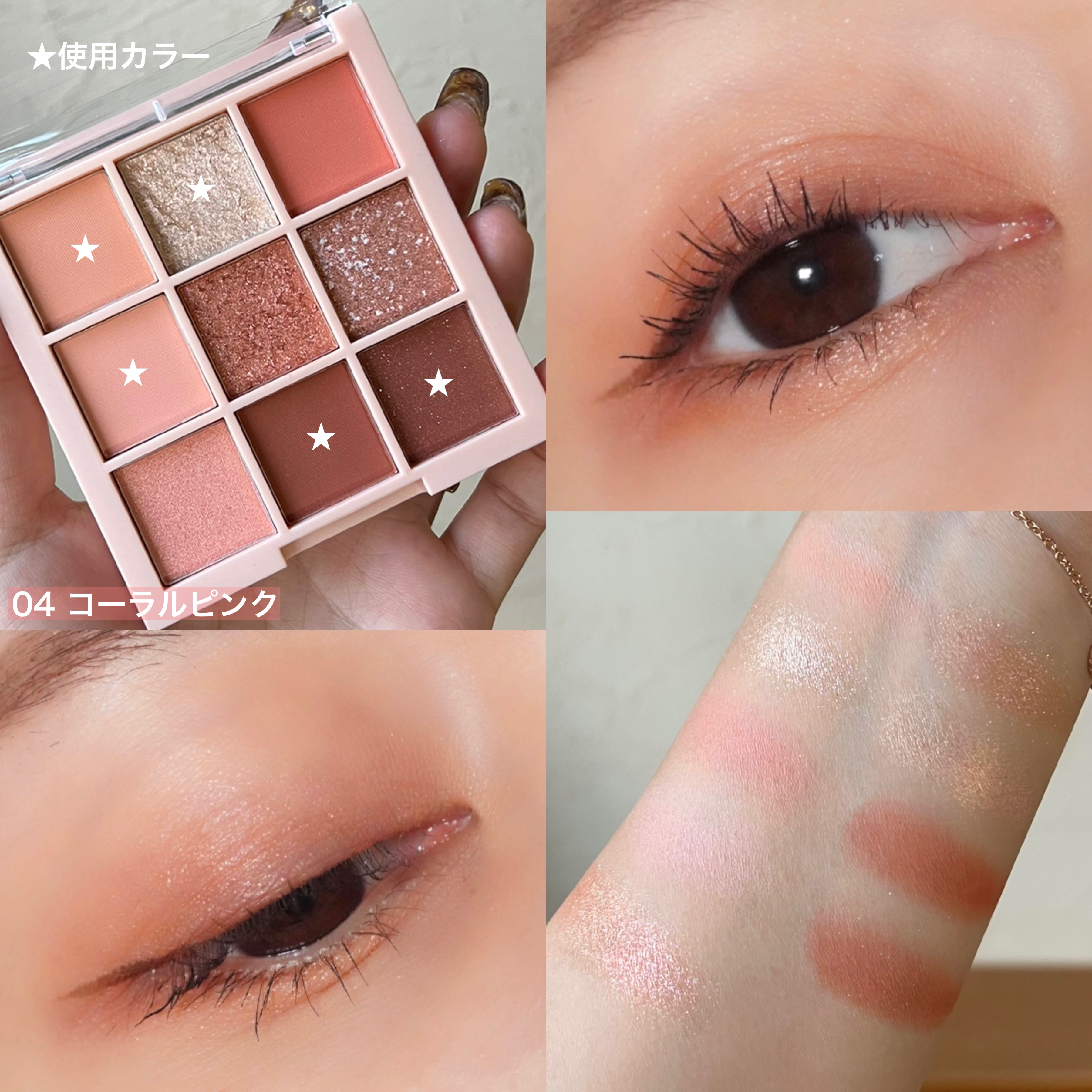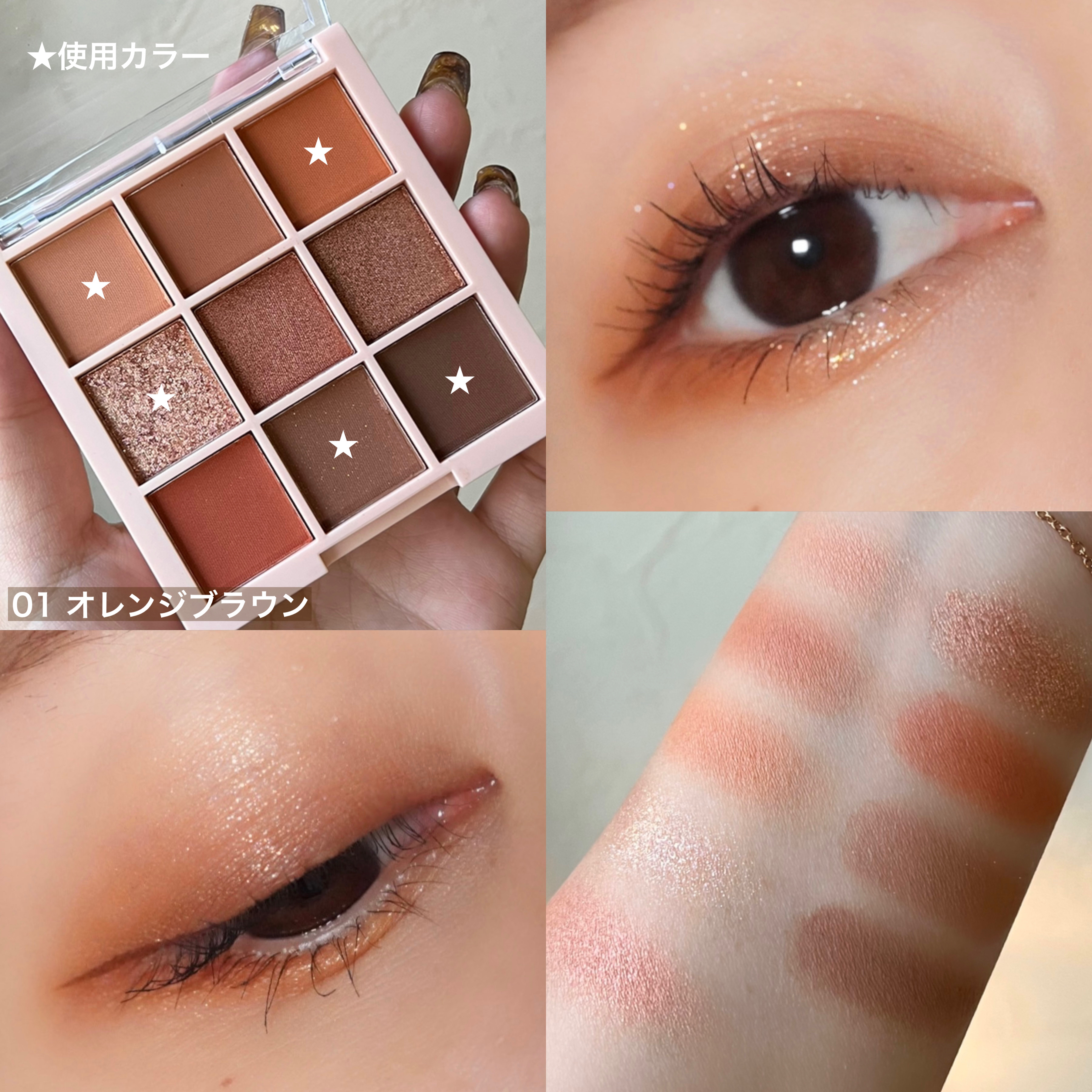 - ひとつでマット・シアーマット・パール・グリッター・ラメの多彩な質感とカラーバリエーションが楽しめる9色アイシャドウパレット。微細粒子で肌にぴったりフィットして馴染み、発色の良さが続きます。