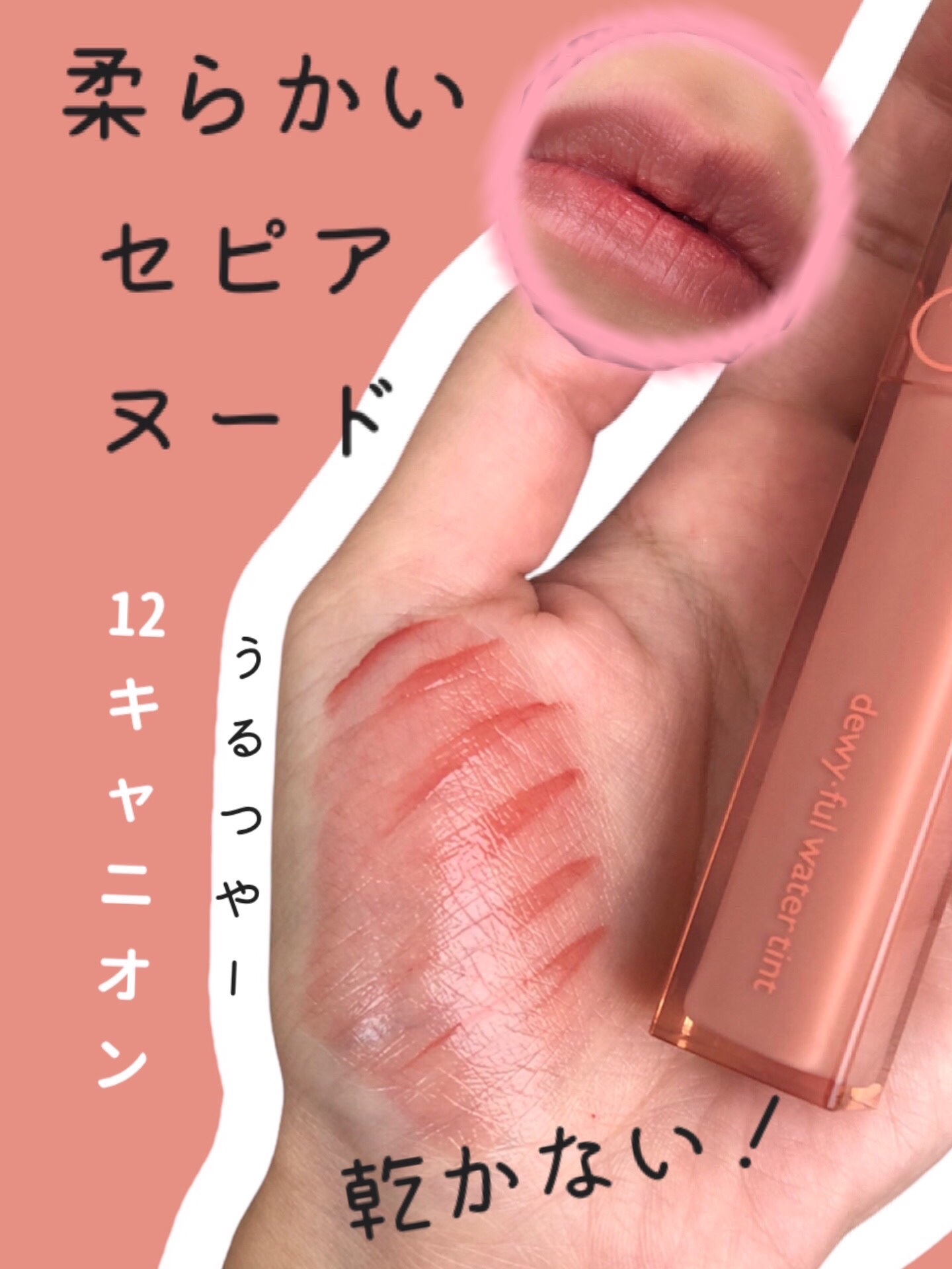 【使った商品】rom&nd デュイフルウォーターティント¥1320【色味】10マーマーピンク12キャニオン【色もち】ティント力は強めに思うので、うっすらと残り続ける印象。【質感】ツヤツヤ【良いところ】ちゃんと見た感じの発色してくれる。ほしい色...
