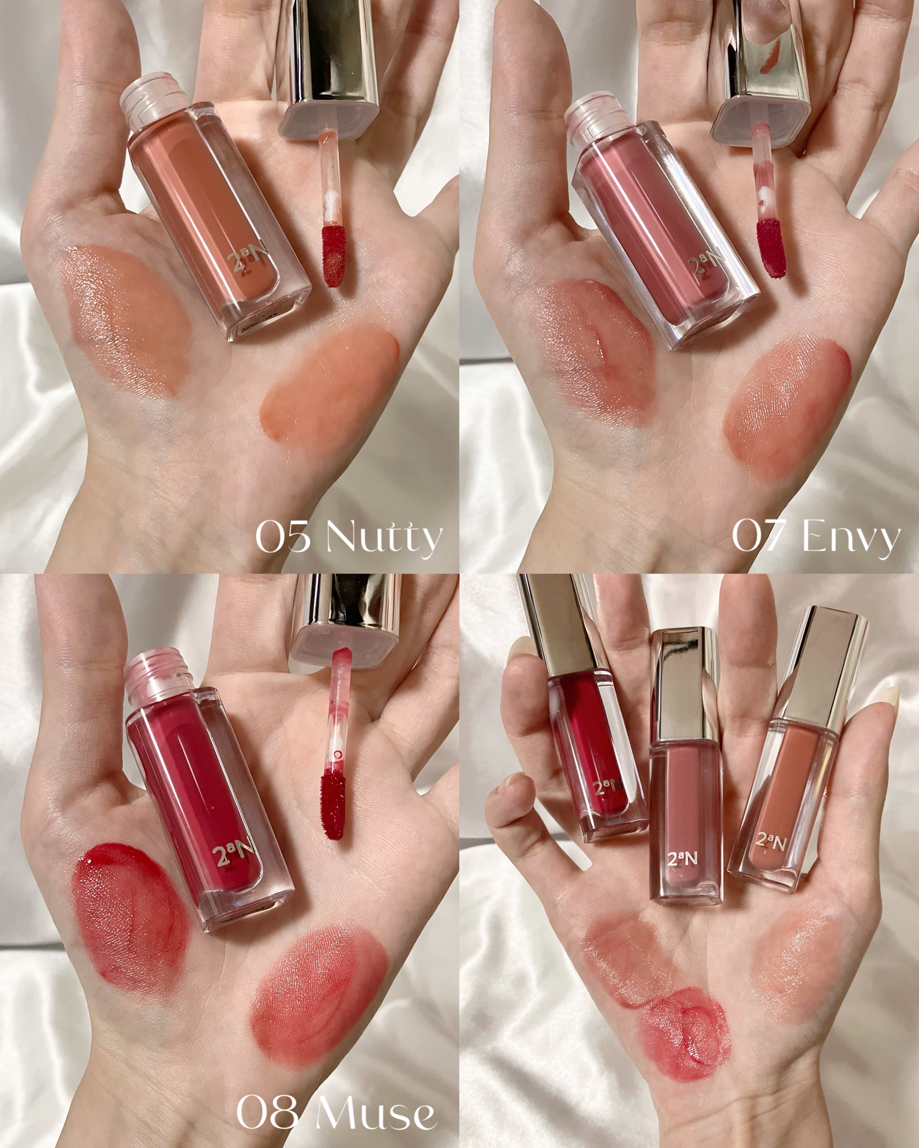 柔らかいベルベットテクスチャー。落ち着いた雰囲気のカラーが多い印象です。柔らかく薄く伸ばせて唇に密着するのでティッシュオフしても色が残っている印象。 まろやかでソフトなカラーがかわいすぎる🥹✨ みずみずしいツヤ感も綺麗💗 塗り心地は軽めでベタつく感じも少ないです🫧 ベルベットとグローを重ねて使っても可愛い🥹💗