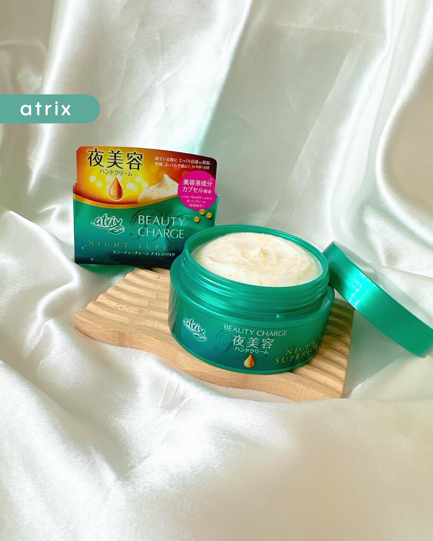 アトリックス ビューティーチャージナイトスペリア美容液ハンドクリーム夜美容で翌朝ふっくらハリのある手肌に気になる爪、指先まで潤って美しく。こっくり濃厚なクリームにたっぷりの美容液成分がぎゅっと詰まったカプセルを配合した美容液ハンドクリーム寝て...
