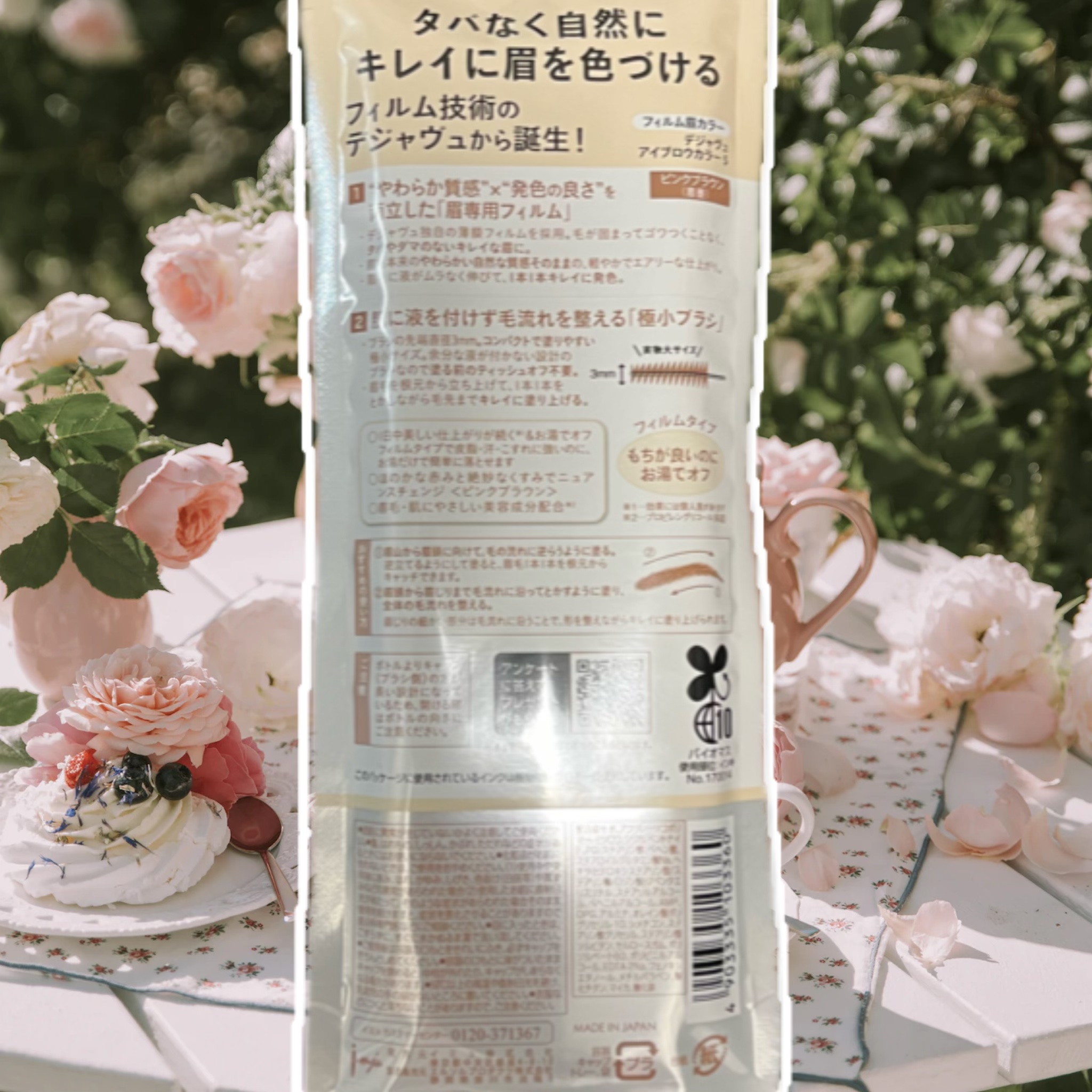 - \\25年3月定番新色モカグレージュ発売// 「フィルム眉カラー」なら眉の印象を自然にやわらげ、ふんわり質感の垢抜け眉に! 1.塗りやすい極小ブラシ ・ 先端直径3mmで、地肌に液がつきにくく根元から色づける ・余分な液がつかない設計で、ティッシュオフ不要 2.眉専用フィルム液 ・眉毛1本1本にキレイに色付き、自眉の黒さをやわらげる ・タバになったり、パリッと固まったりせず、まるで自眉のような仕上がり ・皮脂・汗・こすれに強いのにお湯で簡単オフ (※2025年9月以降、商品パッケージをリニューアル。)
