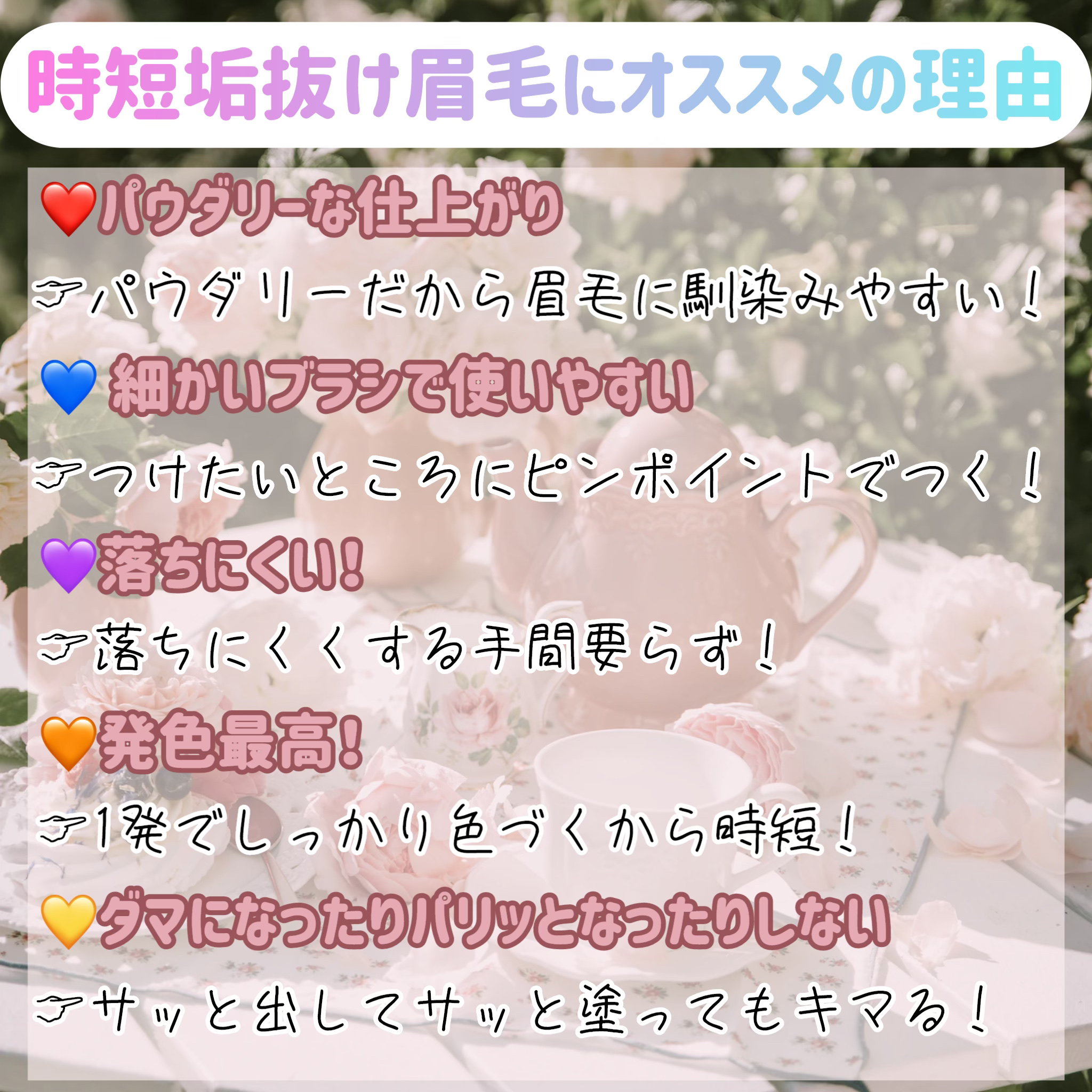 | メイクアップランキング第36位 | ひと塗りでしっかり染まって黒眉の私でも簡単に垢抜け眉に😊 | 詳細を見る | |