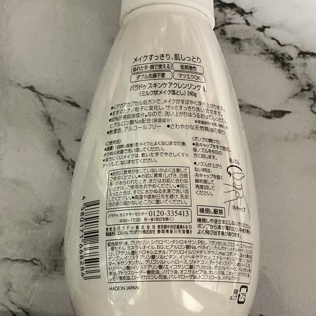 パラドゥ様のプレゼントキャンペーンでスキンケアクレンジングL当選しました🎉ミルク状メイク落としです。メイク落としの種類って沢山あるけど、私はミルクタイプが一番好きです❤肌に優しい感じがする。これスキンケアクレンジングってなってる‼...