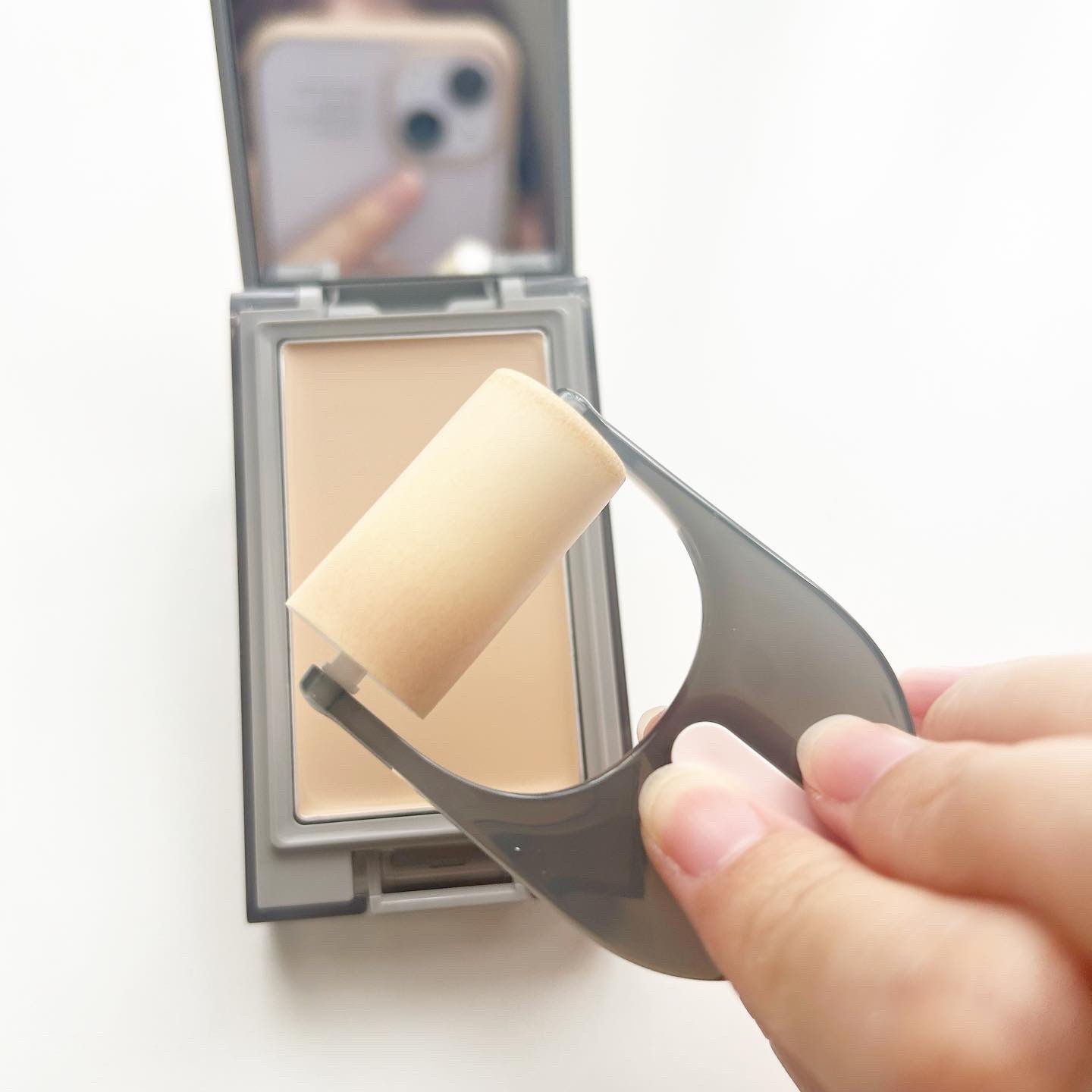 ローラーで付けるバーム状美容液ファンデーションです✨ 大人ピンクが素敵な厚みのあるコンパクトケースで、ローラーが収納出来ます✨ コロコロとファンデーションを肌に付けてみると、とてもなめらかに均一にのせることができて、ムラなく綺麗に仕上がりました✨ しっとりとした使用感です✨ スキンケア後、化粧下地なしでもなめらかな仕上がり ⭐️皮脂固化パウダー配合 ⭐️長時間保湿感が持続します
