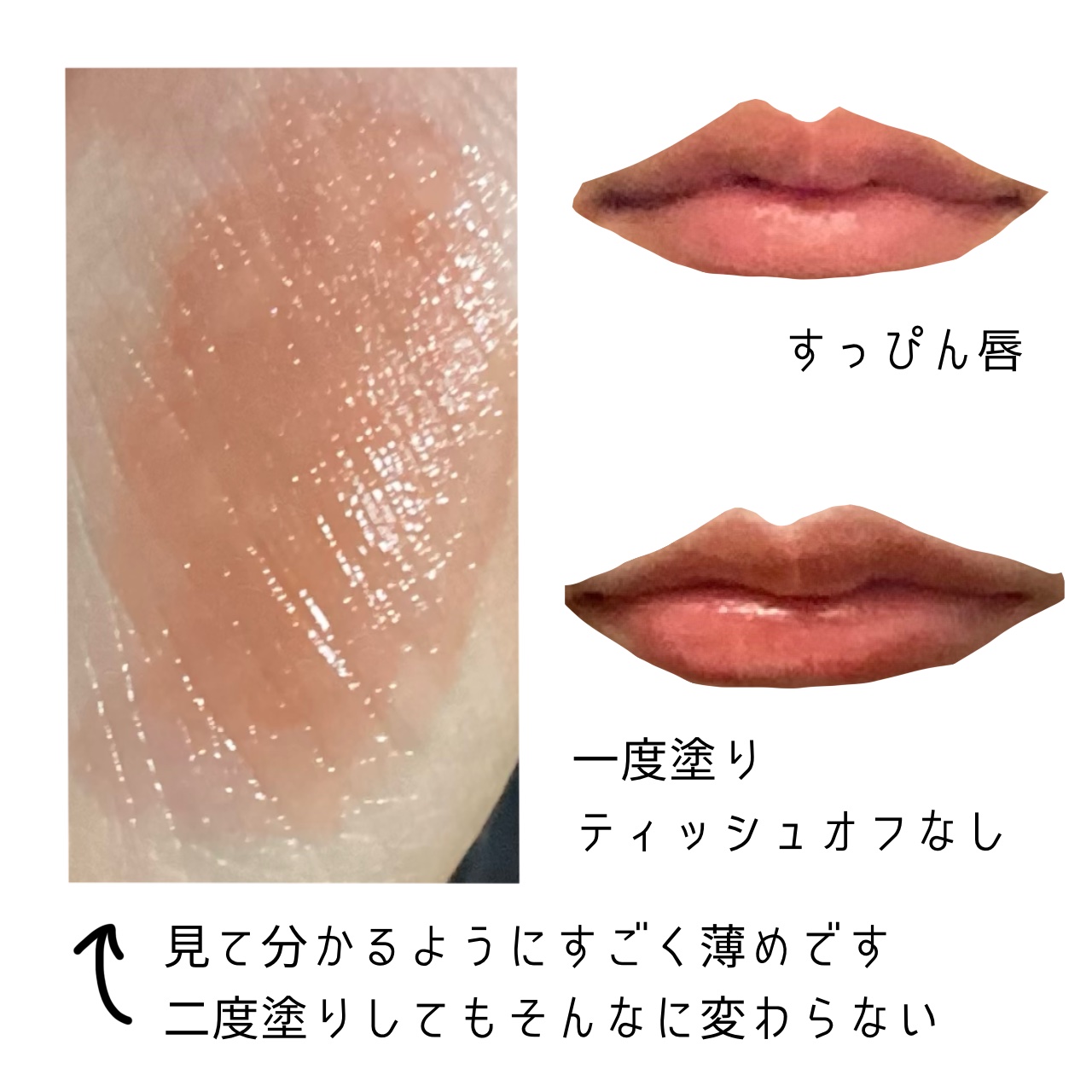 - プリンのようなぷるぷる光沢感が魅力的なグロッシーリップティントです。