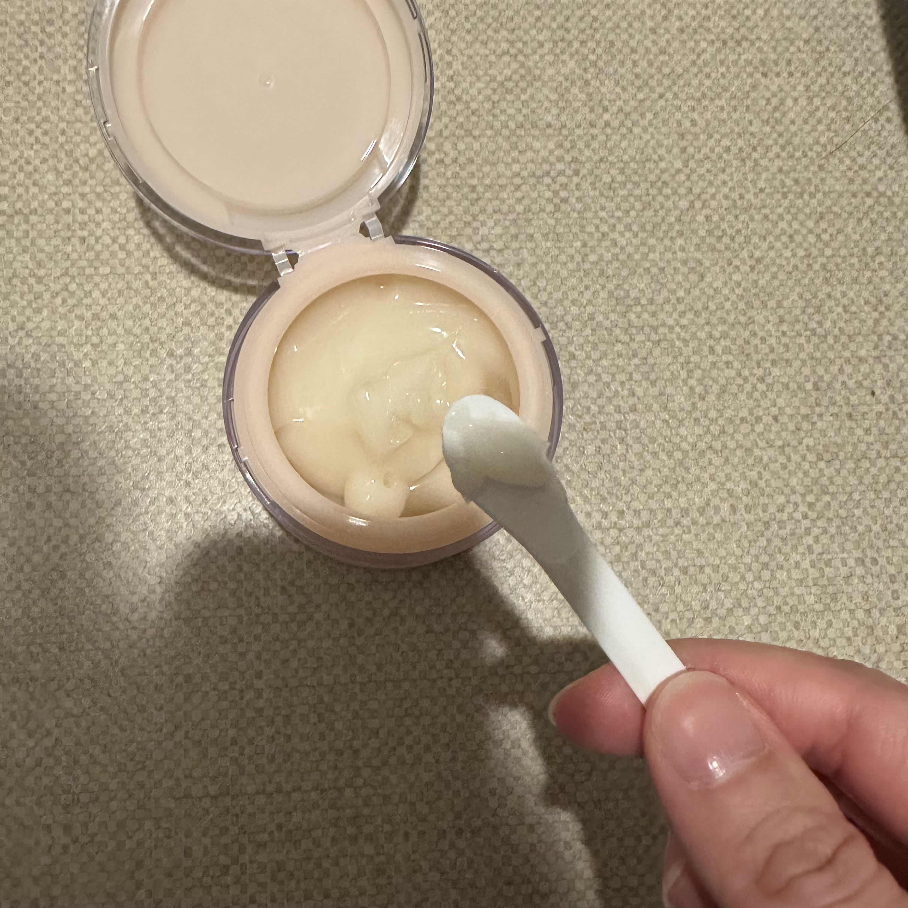 テクスチャーは、とろっとしているのでなじみやすいです。 なので、少しずつ指でとって使用方法通りに少しずつぬって使っています。 まずは鼻まわり、次に額、残りの部分にぬって、最後に首にぬっています。 ふわっと優しい香りがして心地よかったです。