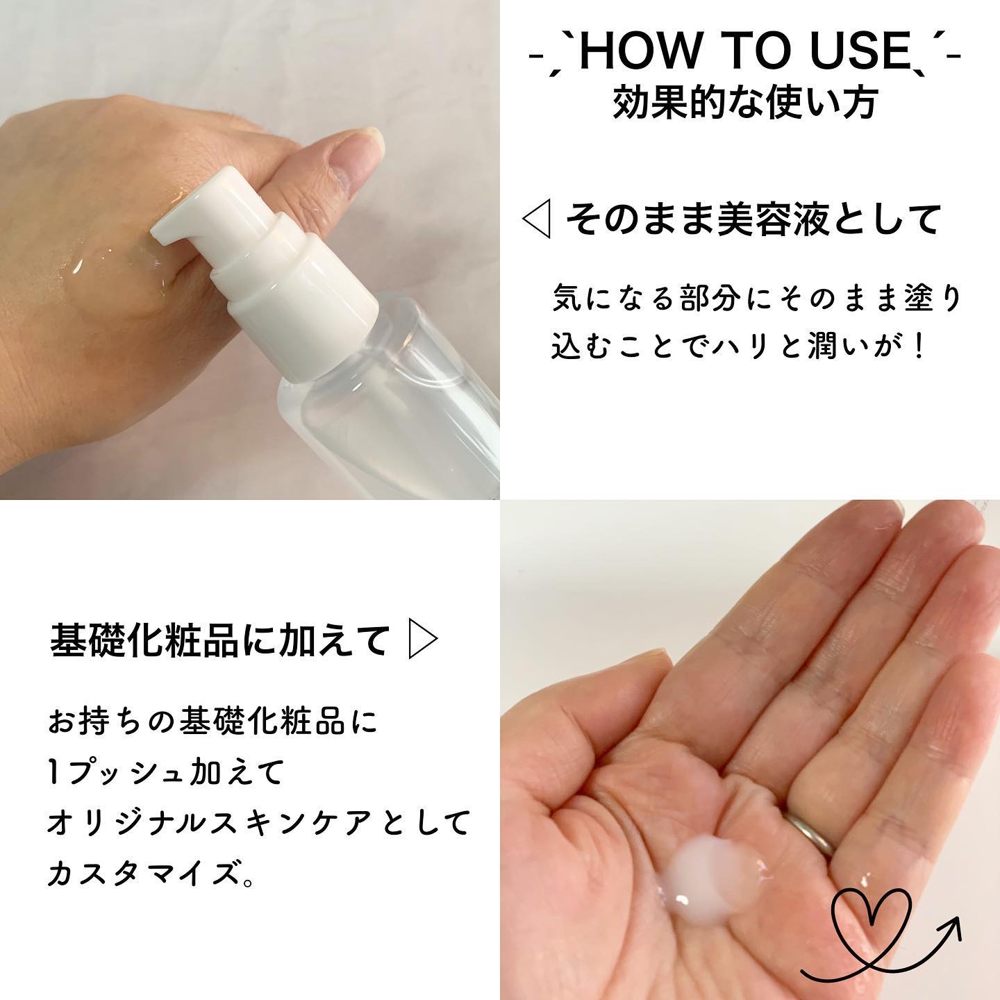 うるおってお肌のキメが整います✨ こちらはそのまま美容液として使う以外に、手持ちのスキンケア、ヘアケア、ボディケアに混ぜて使うこともできるそうです。 香料が入っていないからどなたでも使いやすいと思います クセがなく万能に使える美容液。