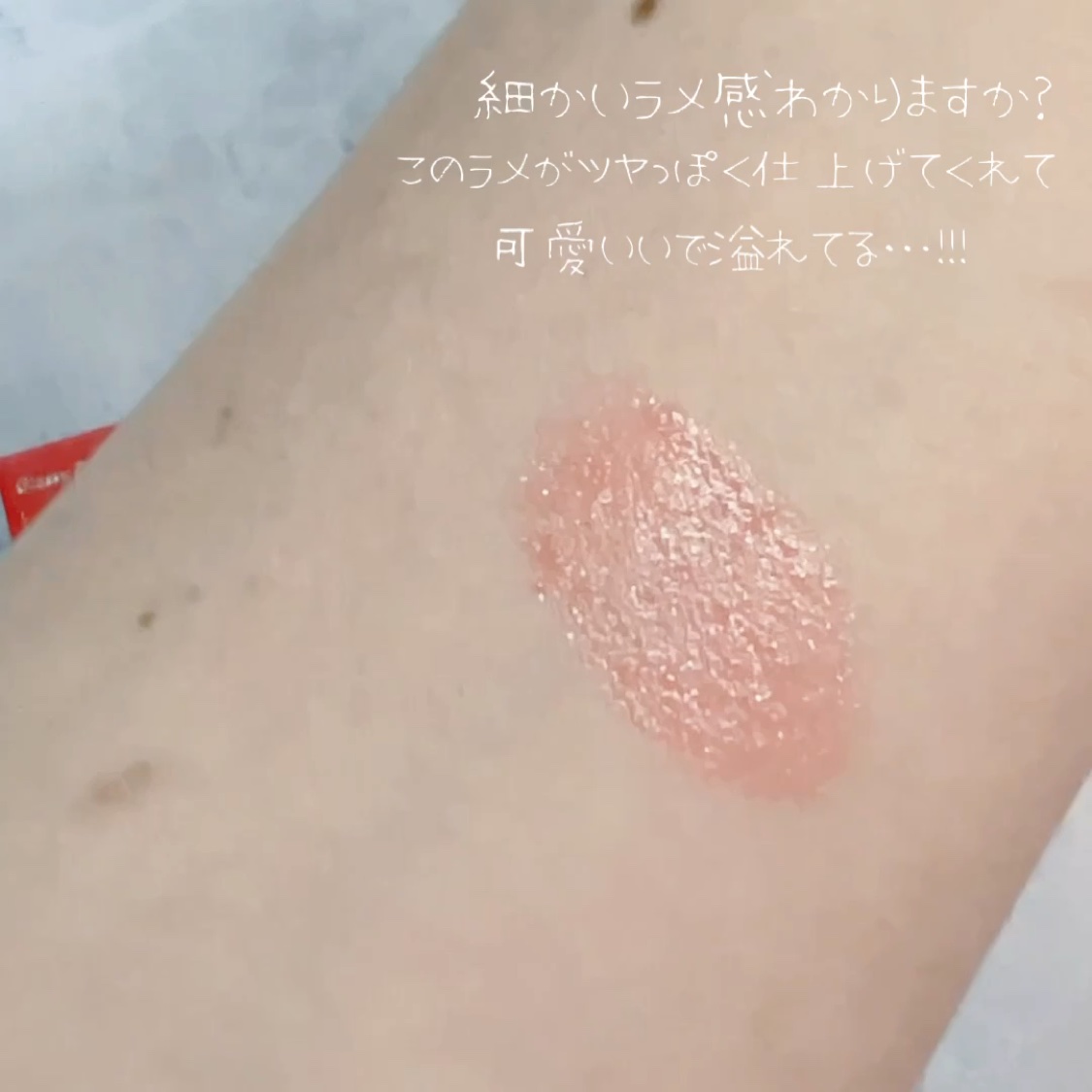 初の香り付きホリデー限定グラッシーボムティントが登場! 肌なじみが抜群!レモン・ピンクのラメがきらきら輝くヌーディーなピーチカラー。 色もラメ感も本当に可愛く、シャルドネの香りが良い香り♡♡ティッシュオフしても結構色が残って色持ちも良いです✨️