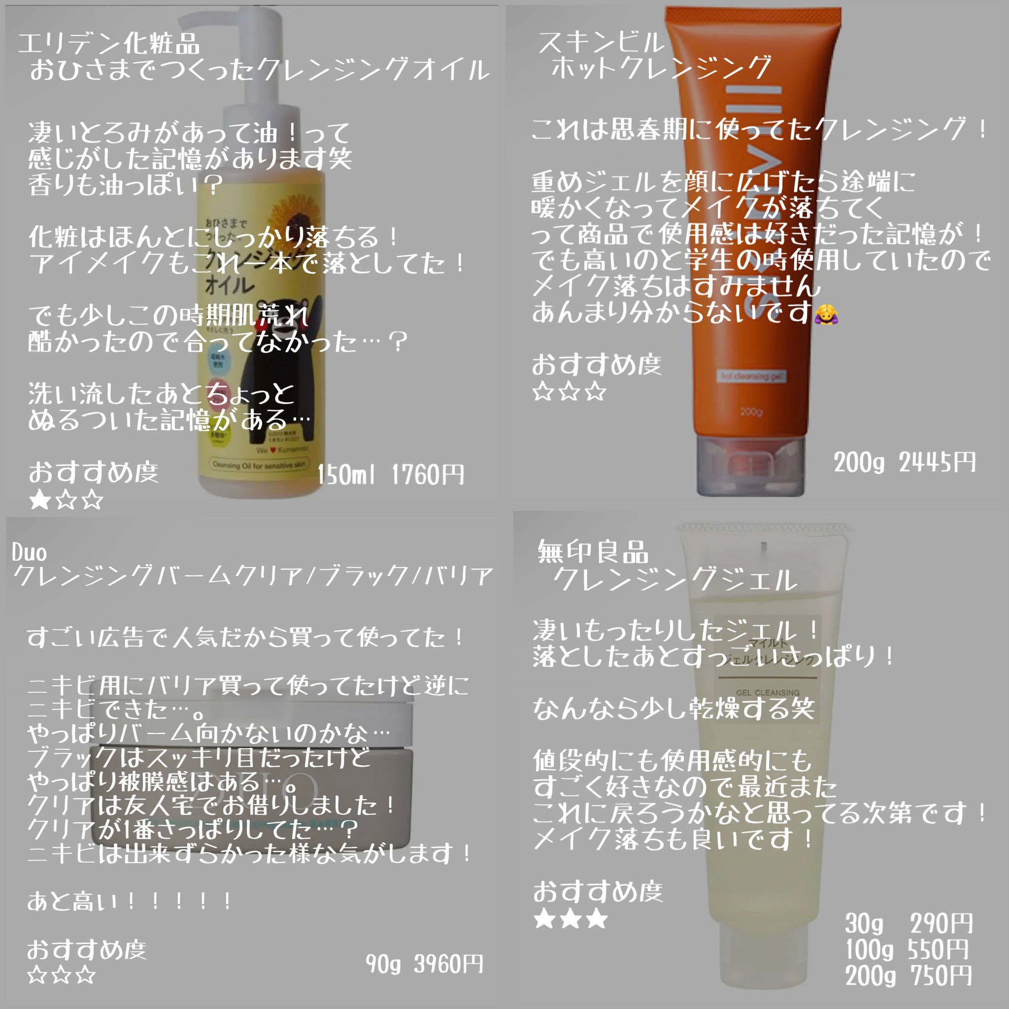 自分(混合肌、敏感肌、ニキビすぐできる)使用感メモです!昔になるにつれて記憶も曖昧になってます!ご参考程度にご覧頂ければ幸いです!次使いたいクレンジングメモ・チャコットクレンジング・ビフェスタ水クレンジング・無印良品マイルドクレンジングオイル...