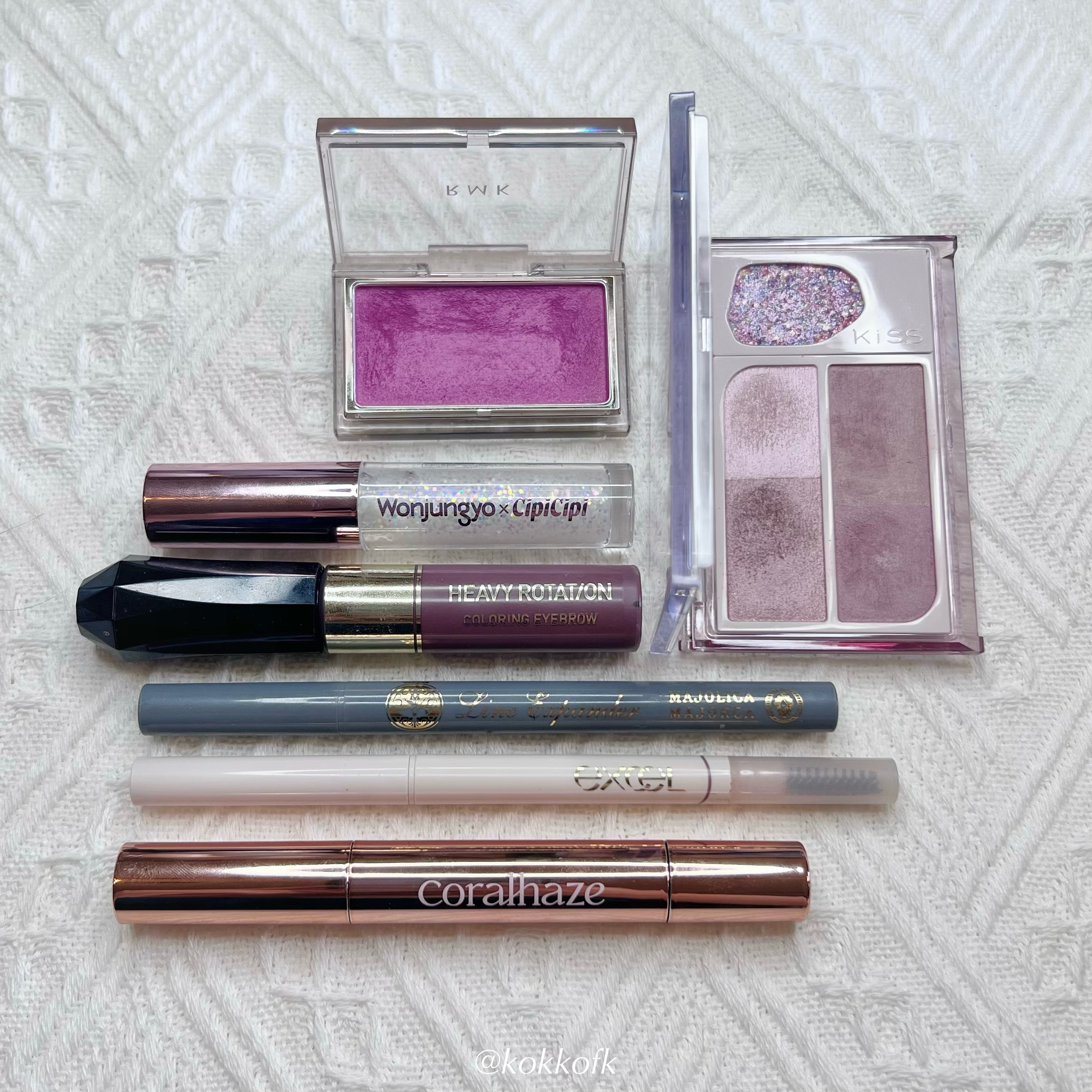 W デイリームードアップパレット01 ソフトモーブピンク (¥2420) プロ アイ パレット13 PICNIC BY THE SUNSET, グラムチェンジマルチパレット04 ユニコーンピンク (¥1890) グリッターぺディアアイパレットN°4 オールラベンダーフォグ (¥2950) シャドウパレット16 バイオレットニット (¥3610) ベターザンパレット06 PEONY NUDE GARDEN, 09 DREAMY LILAC GARDEN (¥2900)