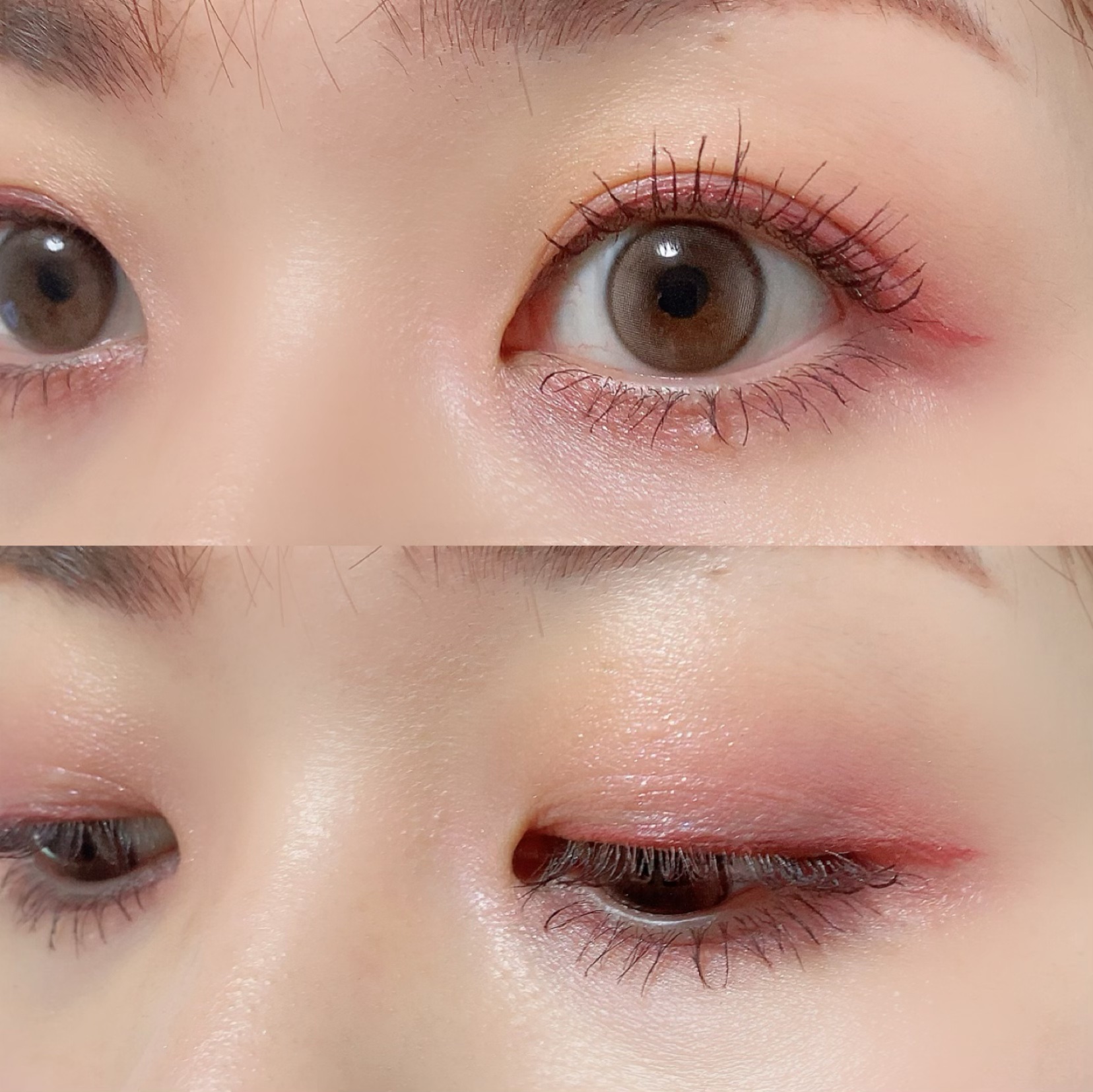 メインカラーとラメで簡単に。 このアイシャドウ指塗りするんだけど使ってるとやっぱり色がお花部分と混ざっちゃうんよね🙄 LAWSON限定 🐈⬛&nd by rom&ndアンドバイロムアンドメロウアイパレットINAP01インアピンク🐾 の左側2色使いました。 ギラギラしてないので涙袋作る方にオススメ。 あたしは涙袋はいらないです。