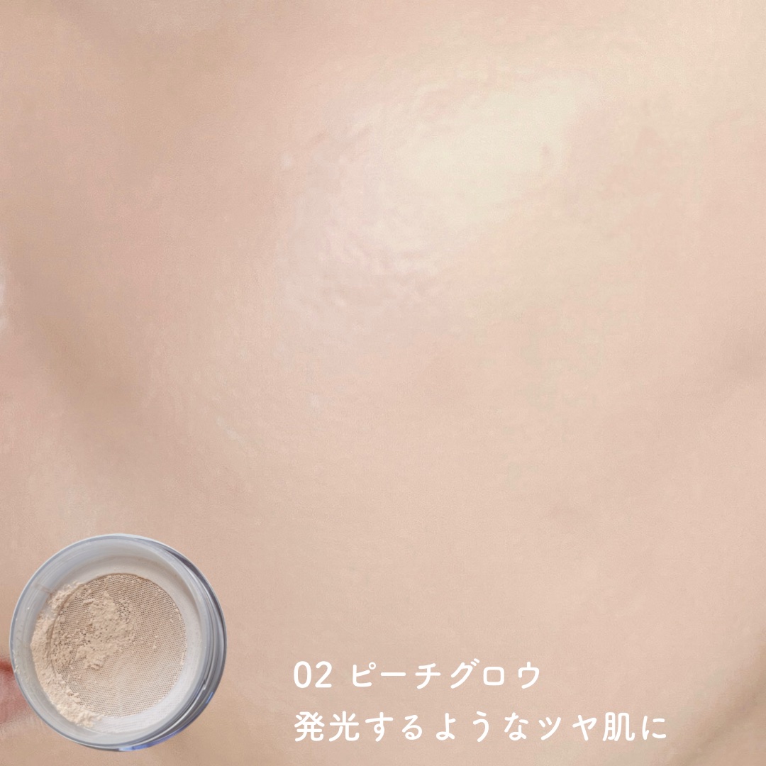 - 美肌演出効果にこだわった、プレミアムなスキンケアパウダー 1.アミノ酸コーティング処方 ベースとなるパウダーをアミノ酸*1でコーティング。 お肌にしっとりと密着し、極上※のうるふわ肌に。 2.セラミド内包パウダー*2 お肌のうるおいバリアをサポートし、乾燥から守ります。 3.肌色補正◆パウダー ◆メイクアップ効果 多面体パウダーが光を乱反射させ、お肌を明るく見せる。 ○シルクパウダー*3 毛穴やお肌の凹凸をカバー。 ○皮脂吸着効果 テカリを防ぎ、つけたての仕上がりが持続。 くすみをとばしやわらかな印象に ピンクパール配合 ○毛穴ぼかし効果! 毛穴を目立たなくするソフトフォーカス効果のある粉体を配合。くすみを飛ばし、美しく透明感のあるお肌に。 ○美容液成分リピジュア*4配合 保湿感を持続させ、うるおいをキープ ○浸透型*5ビタミンC誘導体*6配合 *1 ジラウロイルグルタミン酸リシンNa(保湿) *2 コメヌカスフィンゴ糖脂質、コメヌカ油、シクロデキストリン(すべて保湿) *3 シルク *4 ポリクオタニウム-51(保湿) *5 角質層まで *6 パルミチン酸アスコルビルリン酸3Na(整肌) 伸縮ネット容器採用 上から押さえるだけでパフに均一にパウダーが取れます。 ふんわり贅沢な最高級※パフ ※シリーズ内において オールシーズン用 01 ピーチベージュ:セミマットなうるふわ肌 02 ピーチグロウ:7色パールでふわツヤ肌
