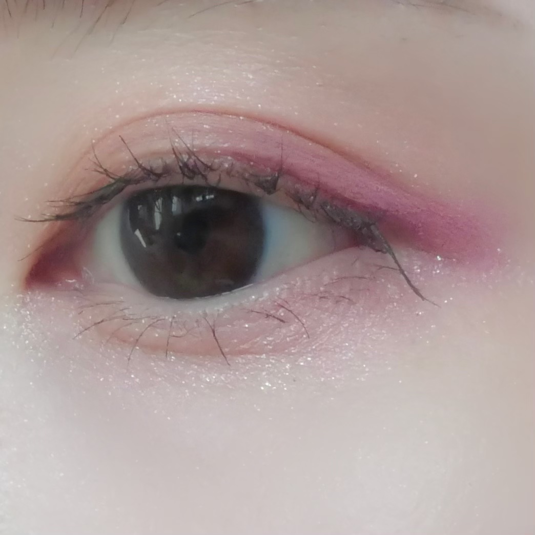 鮮やかなピンクとオレンジが入ったアイシャドウパレットで、青みと黄みのカラーが両方入っているので、使い方次第で雰囲気を変えられます。 ETVOSのアイシャドウは初めて購入したのですが、粉質は柔らかく、発色が良くて驚きました。 アクセントとなるピンクとオレンジはハッキリと色が出て、ラメのきらめきもツヤっと見えて可愛いです。