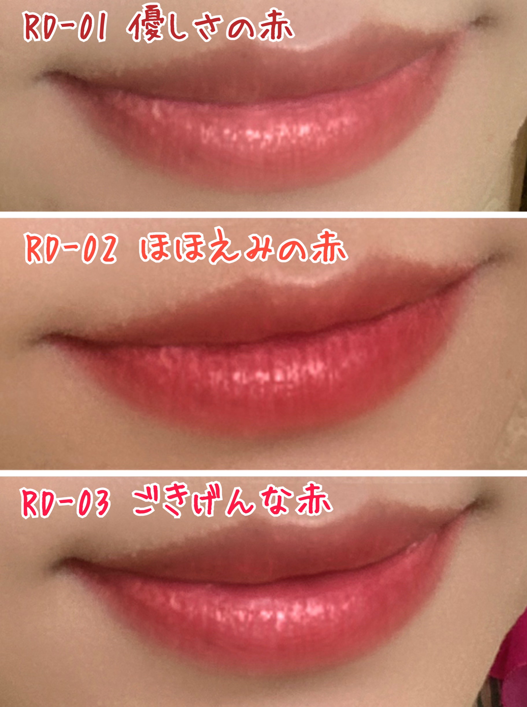 - <RD-01> 水添ポリイソブテン、トリ(カプリル酸/カプリン酸)グリセリル、水添ポリデセン、イソノナン酸イソトリデシル、リンゴ酸ジイソステアリル、パラフィン、合成ワックス、テトライソステアリン酸ジペンタエリスリチル、ビスジグリセリルポリアシルアジペート-2、ラウロイルグルタミン酸ジ(オクチルドデシル/フィトステリル/ベヘニル)、ジイソステアリン酸ポリグリセリル-2、マイクロクリスタリンワックス、水添マイクロクリスタリンワックス、ヒドロキシステアリン酸エチルヘキシル、トコフェロール、水、(エチレン/プロピレン)コポリマー、ポリエチレン、クエン酸、ヒアルロン酸Na、水溶性コラーゲン、フェノキシエタノール、安息香酸、(+/-)アルミナ、セルロース、パルミチン酸、マイカ、ラウロイルアスパラギン酸Na、ラウロイルリシン、塩化亜鉛、酸化チタン、酸化亜鉛、酸化鉄、硫酸Ba、トリイソステアリン酸イソプロピルチタン、トリエトキシカプリリルシラン、黄4、黄5、青1、赤104(1)、赤201、赤202、赤223、橙201 <RD-02> 水添ポリイソブテン、トリ(カプリル酸/カプリン酸)グリセリル、水添ポリデセン、イソノナン酸イソトリデシル、リンゴ酸ジイソステアリル、パラフィン、合成ワックス、テトライソステアリン酸ジペンタエリスリチル、ビスジグリセリルポリアシルアジペート-2、ラウロイルグルタミン酸ジ(オクチルドデシル/フィトステリル/ベヘニル)、ジイソステアリン酸ポリグリセリル-2、マイクロクリスタリンワックス、水添マイクロクリスタリンワックス、ヒドロキシステアリン酸エチルヘキシル、トコフェロール、水、(エチレン/プロピレン)コポリマー、ポリエチレン、クエン酸、ヒアルロン酸Na、水溶性コラーゲン、フェノキシエタノール、安息香酸、(+/-)アルミナ、セルロース、パルミチン酸、マイカ、ラウロイルアスパラギン酸Na、ラウロイルリシン、塩化亜鉛、酸化チタン、酸化亜鉛、酸化鉄、硫酸Ba、トリイソステアリン酸イソプロピルチタン、トリエトキシカプリリルシラン、黄4、黄5、青1、赤104(1)、赤201、赤202、赤223、橙201 <RD-03> 水添ポリイソブテン、トリ(カプリル酸/カプリン酸)グリセリル、水添ポリデセン、イソノナン酸イソトリデシル、リンゴ酸ジイソステアリル、パラフィン、合成ワックス、テトライソステアリン酸ジペンタエリスリチル、ビスジグリセリルポリアシルアジペート-2、ラウロイルグルタミン酸ジ(オクチルドデシル/フィトステリル/ベヘニル)、ジイソステアリン酸ポリグリセリル-2、マイクロクリスタリンワックス、水添マイクロクリスタリンワックス、ヒドロキシステアリン酸エチルヘキシル、トコフェロール、水、(エチレン/プロピレン)コポリマー、ポリエチレン、クエン酸、ヒアルロン酸Na、水溶性コラーゲン、フェノキシエタノール、安息香酸、(+/-)アルミナ、セルロース、パルミチン酸、マイカ、ラウロイルアスパラギン酸Na、ラウロイルリシン、塩化亜鉛、酸化チタン、酸化亜鉛、酸化鉄、硫酸Ba、トリイソステアリン酸イソプロピルチタン、トリエトキシカプリリルシラン、黄4、黄5、青1、赤104(1)、赤201、赤202、赤223、橙201 <RD-04> 水添ポリイソブテン、トリ(カプリル酸/カプリン酸)グリセリル、水添ポリデセン、イソノナン酸イソトリデシル、リンゴ酸ジイソステアリル、パラフィン、合成ワックス、テトライソステアリン酸ジペンタエリスリチル、ビスジグリセリルポリアシルアジペート-2、ラウロイルグルタミン酸ジ(オクチルドデシル/フィトステリル/ベヘニル)、ジイソステアリン酸ポリグリセリル-2、マイクロクリスタリンワックス、水添マイクロクリスタリンワックス、ヒドロキシステアリン酸エチルヘキシル、トコフェロール、水、(エチレン/プロピレン)コポリマー、ポリエチレン、クエン酸、ヒアルロン酸Na、水溶性コラーゲン、フェノキシエタノール、安息香酸、(+/-)アルミナ、セルロース、パルミチン酸、マイカ、ラウロイルアスパラギン酸Na、ラウロイルリシン、塩化亜鉛、酸化チタン、酸化亜鉛、酸化鉄、硫酸Ba、トリイソステアリン酸イソプロピルチタン、トリエトキシカプリリルシラン、黄4、黄5、青1、赤104(1)、赤201、赤202、赤223、橙201 <RD-05> 水添ポリイソブテン、トリ(カプリル酸/カプリン酸)グリセリル、水添ポリデセン、イソノナン酸イソトリデシル、リンゴ酸ジイソステアリル、パラフィン、合成ワックス、テトライソステアリン酸ジペンタエリスリチル、ビスジグリセリルポリアシルアジペート-2、ラウロイルグルタミン酸ジ(オクチルドデシル/フィトステリル/ベヘニル)、ジイソステアリン酸ポリグリセリル-2、マイクロクリスタリンワックス、水添マイクロクリスタリンワックス、ヒドロキシステアリン酸エチルヘキシル、トコフェロール、水、(エチレン/プロピレン)コポリマー、ポリエチレン、クエン酸、ヒアルロン酸Na、水溶性コラーゲン、フェノキシエタノール、安息香酸、(+/-)セルロース、パルミチン酸、マイカ、ラ