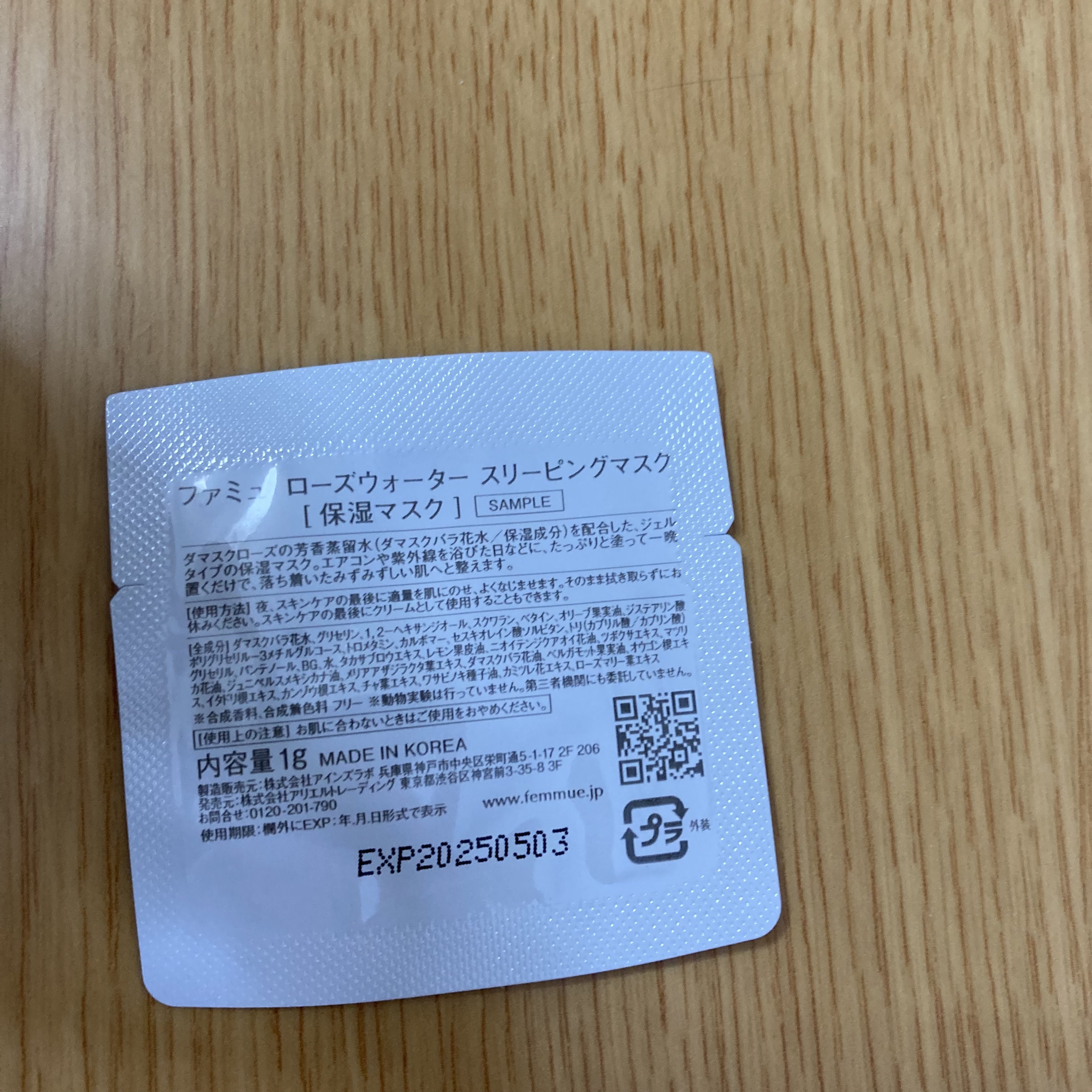 商品詳細情報FEMMUE ローズウォーター スリーピングマスク