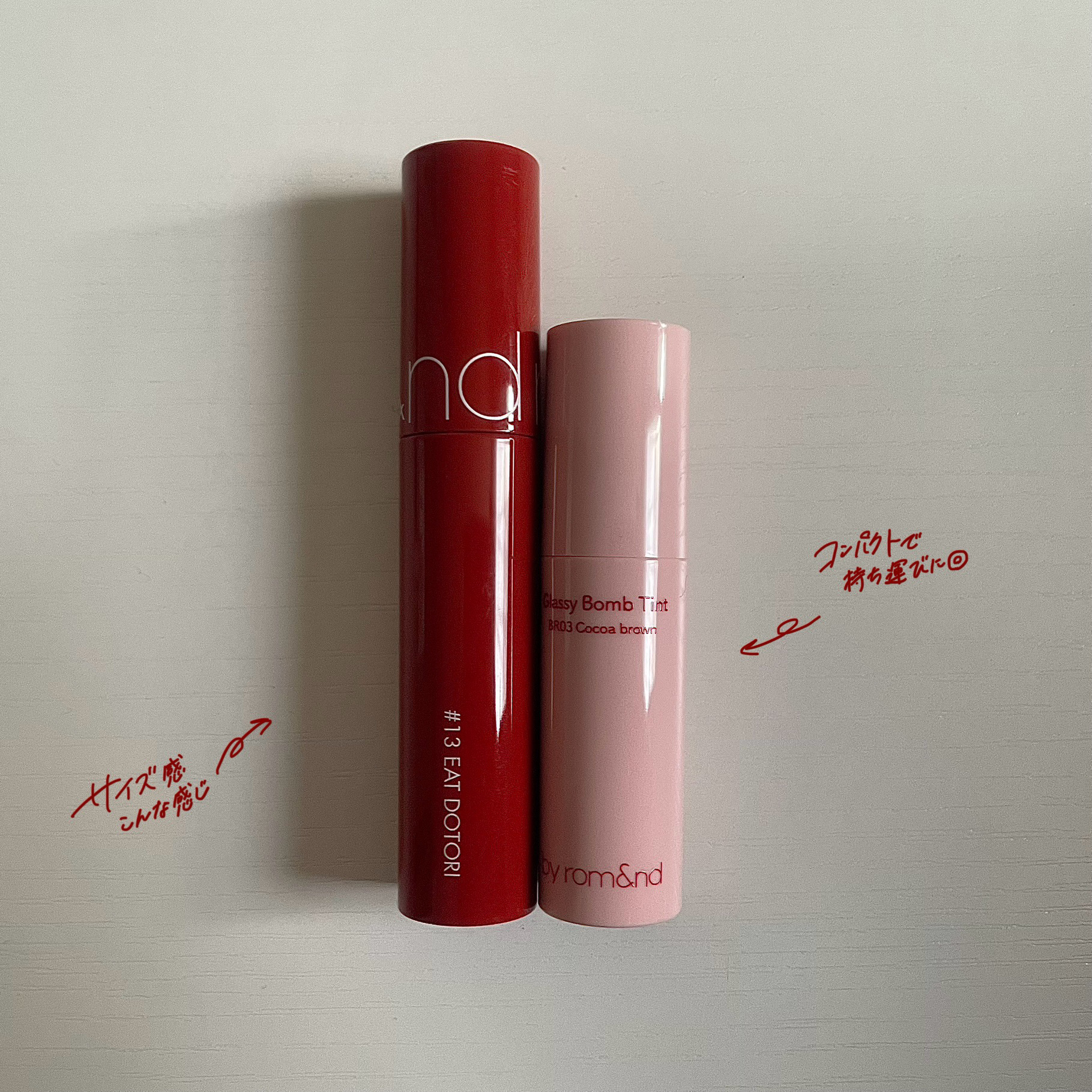 塗り心地はチップが斜めになってるので、ロムアンドよりも塗りやすいかも。 コンパクト且つお手頃価格なのが良い👍 私のお気に入りはBR03。ブラウンリップってやっぱり素敵🤎