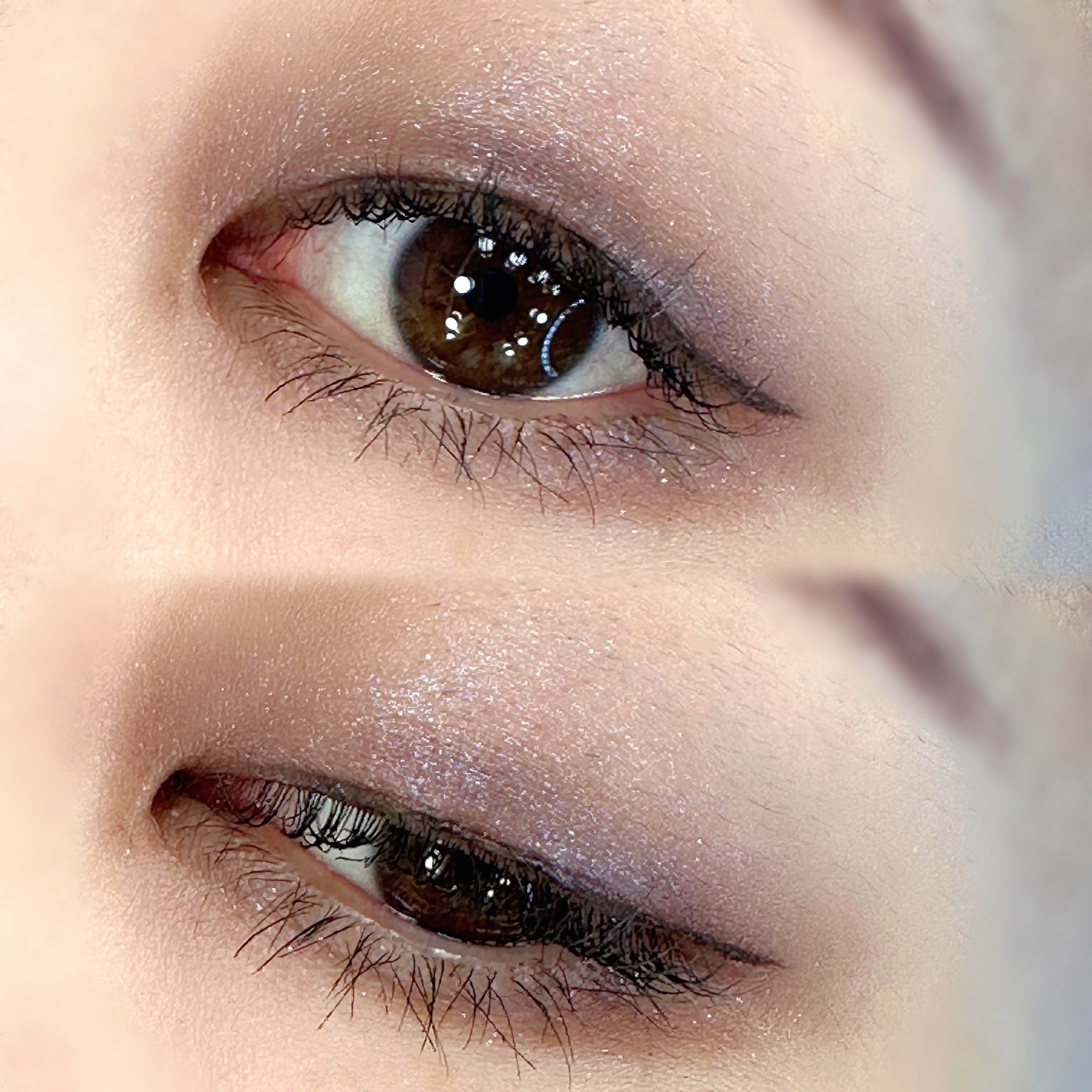 ホワイト?シルバー?系の上品な透明感のある輝き✨ ギラギラしすぎにはならないし、ちょうどいい❤️真っ白ではないので、ブルベイエベ問わず、メイクのカラー問わず使えそう╰(*´︶`*)╯♡ 指でつけたらしっかりつくので、アイシャドウとしても使える✨柔らかいブラシでつけたらほんのりキラキラ🌟