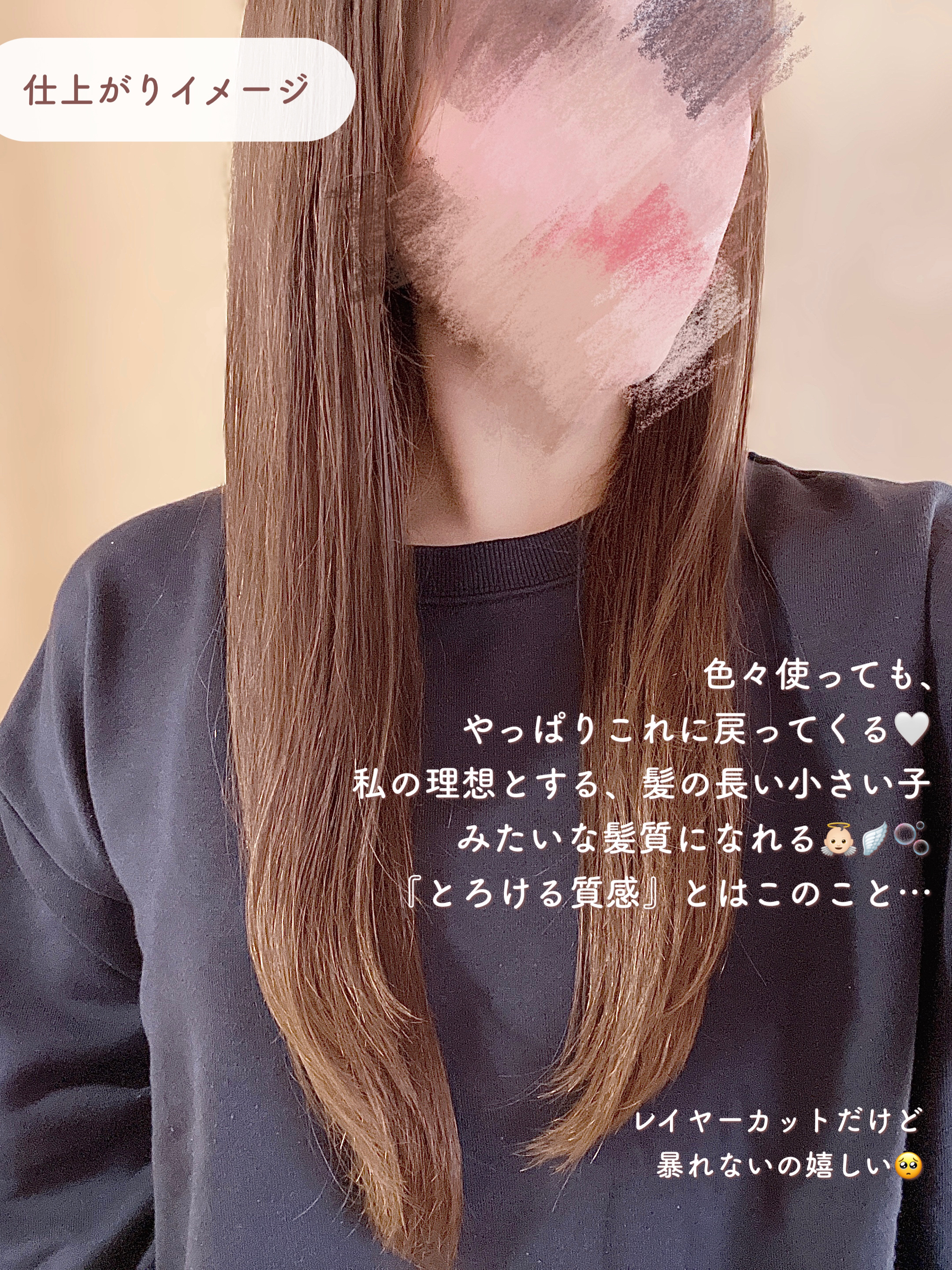 | 全体的な仕上がりは つるんと指通りが良くまとまりも良くて 個人的にはとっても好きな使用感です! | 詳細を見る | ||