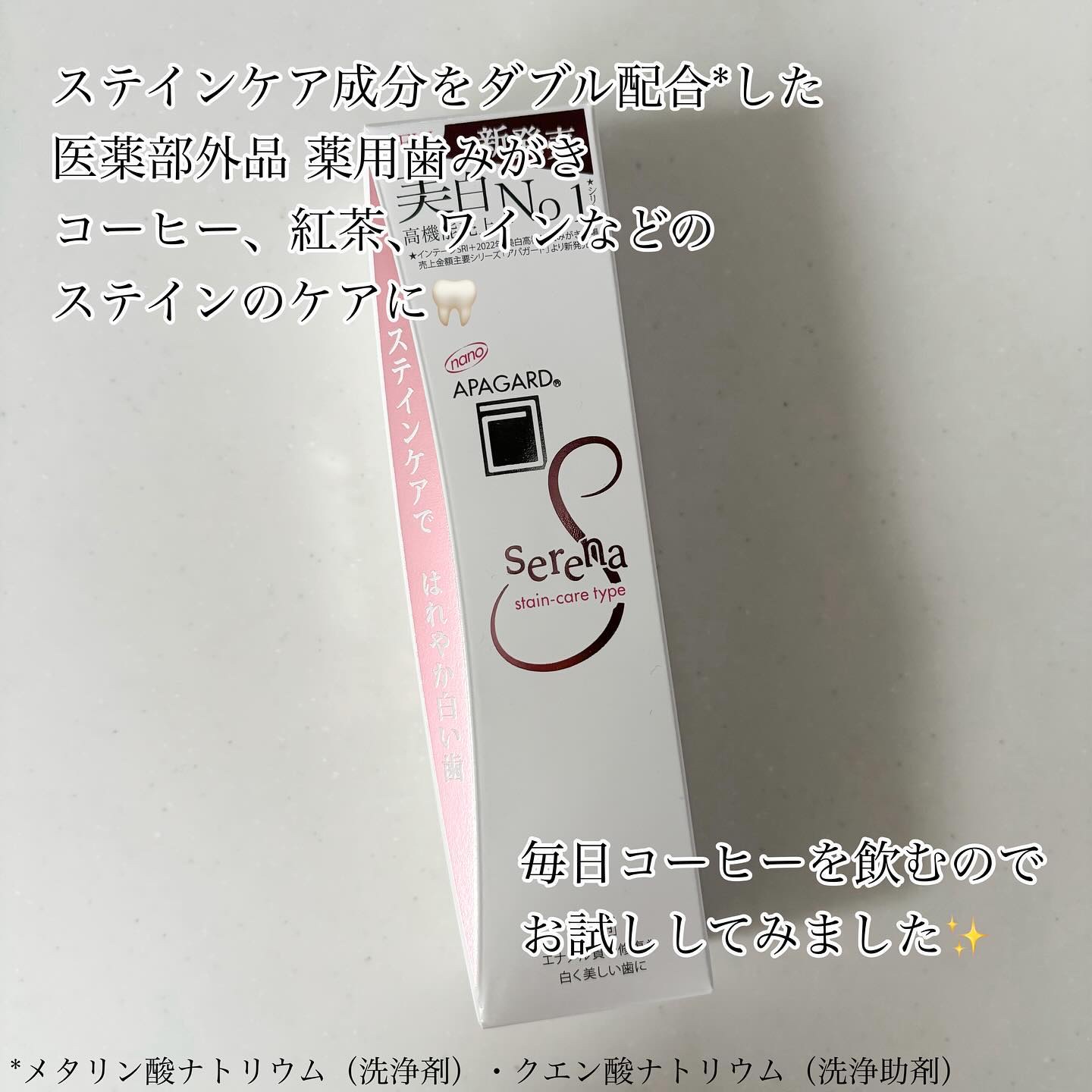 \気になるステインもしっかりケア はれやか白い歯へ/・アパガードセレナ・アパガードクリスタル歯ブラシを使ってみました🙆💛コーヒー、紅茶、ワインなどのステインをしっかりケアできるステインケアタイプアパガードセレナ🩷アパガードさんの歯磨き粉はもう...
