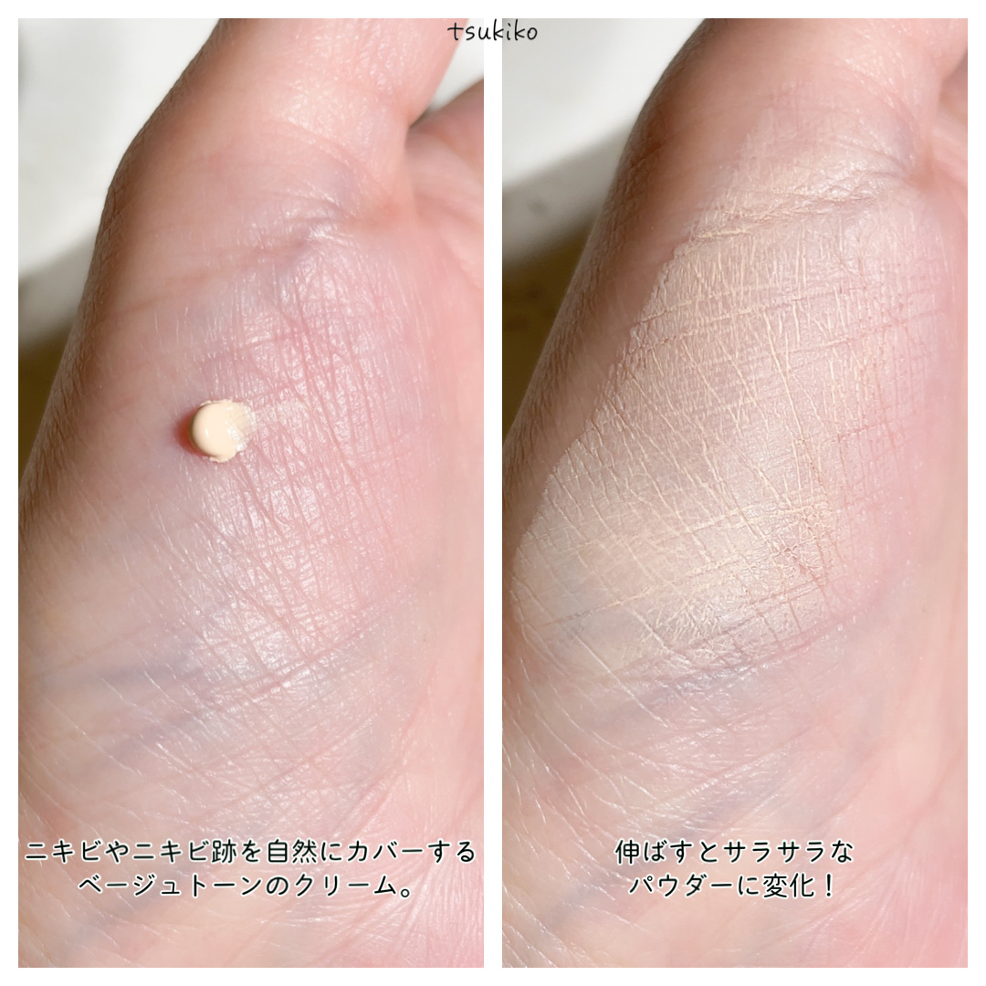 - 隠すことは、防ぐこと。 ニキビを忘れる※1、ベージュタイプの薬用リペアクリーム。 赤み・ニキビ跡・色ムラを自然にカバーしながら、予兆にアプローチ 毎日のケアで、ニキビを未然に防ぐ、そしてシミにしない※2 肌に自然になじむベージュタイプ。 有効成分 イソプロピルメチルフェノール、グリチルリチン酸ジカリウム、ビタミンC誘導体配合。ニキビ・肌荒れ・シミを防ぎます※2。 のびの良いクリームが、塗布した瞬間にサラサラのパウダーに変化するウォーターインシリコン処方採用。毛穴をふさがず、肌に負担をかけません。 赤み・ニキビ跡・色ムラを自然にカバーする色設計&ソフトフォーカス効果。ファンデーションを重ねてもキレイに仕上がります。 肌コンディションをすこやかに保つ、整肌・保湿成分「ユキノシタエキス」「アーティチョークエキス」配合。 ※1カバー効果による ※2メラニンの生成を抑え、シミ・ソバカスを防ぐ ■色素が直接肌に触れない独自技術PV技術を採用。 ■低刺激性・無香料・アルコール(エタノール)フリー・アレルギーテスト済・パッチテスト済・ノンコメドジェニックテスト済 (すべての方にアレルギー・肌トラブルが起こらない、ニキビのもと(コメド)ができないというわけではありません。)