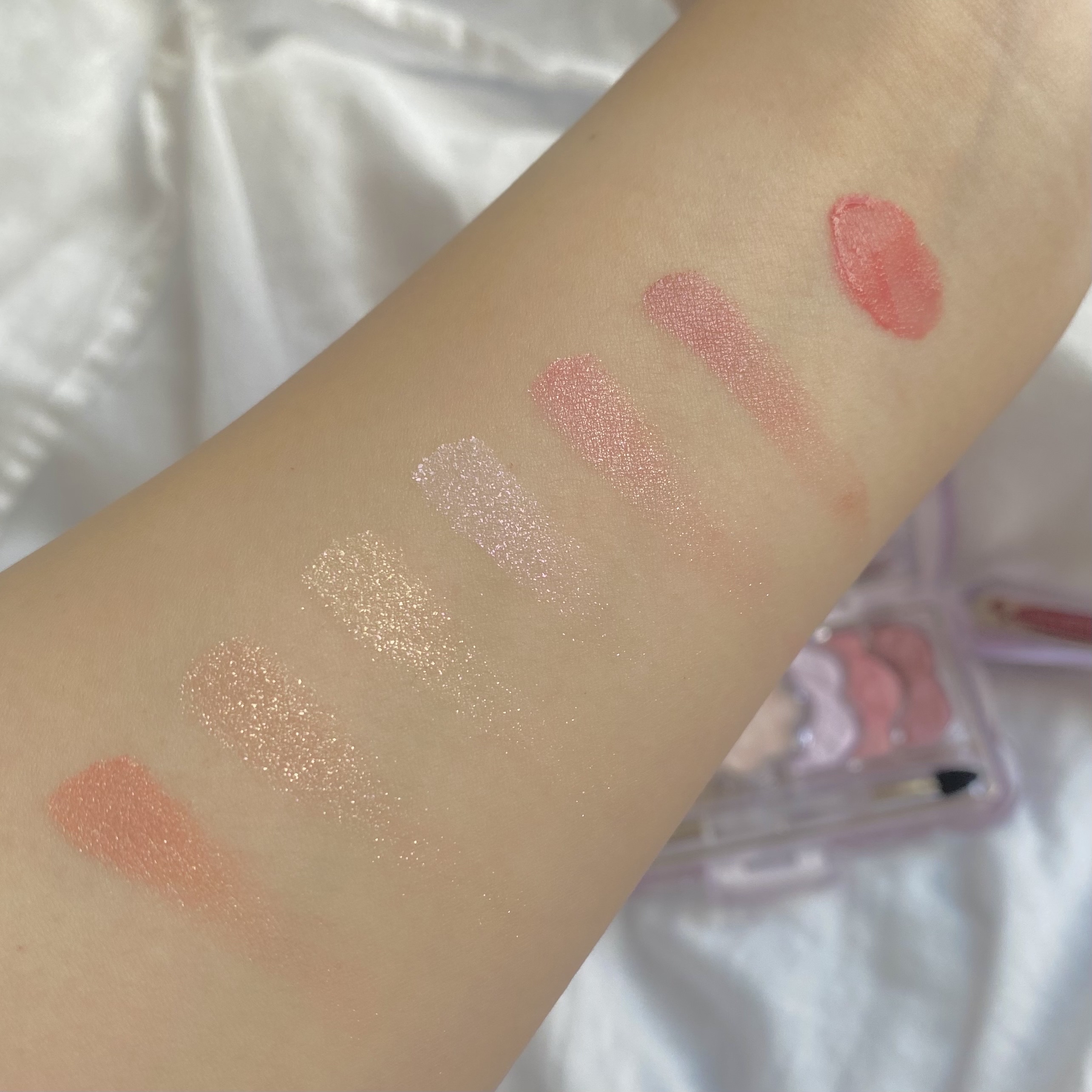 見た目可愛いし、小さくて薄いから持ち運びに便利✊🏻 触るとぷにぷにしててずっと触りたくなる笑 クリームチークだからべたべたするかと思いきや、つけた後結構サラサラで使いやすい! パールタイプだと頬キラキラし過ぎるんじゃないかと思ってたけど自然な感じに仕上がるし、この色味は誰でも使えると思う! ほがしやすいしつけすぎることもないから、初心者でも使いやすそう💭 可愛いし安いし集めたくなる🥺
