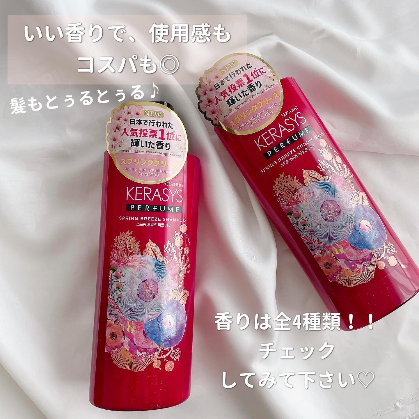 ケラシス様から提供いただきました!【パフュームスプリングブリーズシャンプー&コンディショナー】韓国のシャントリ初めて🫧香りは甘すぎず強すぎずでふわっと香る感じ🌼(香り成分)TOP│ラズベリー、ベルガモット、チェリーMIDDLE│チェリーブロ...