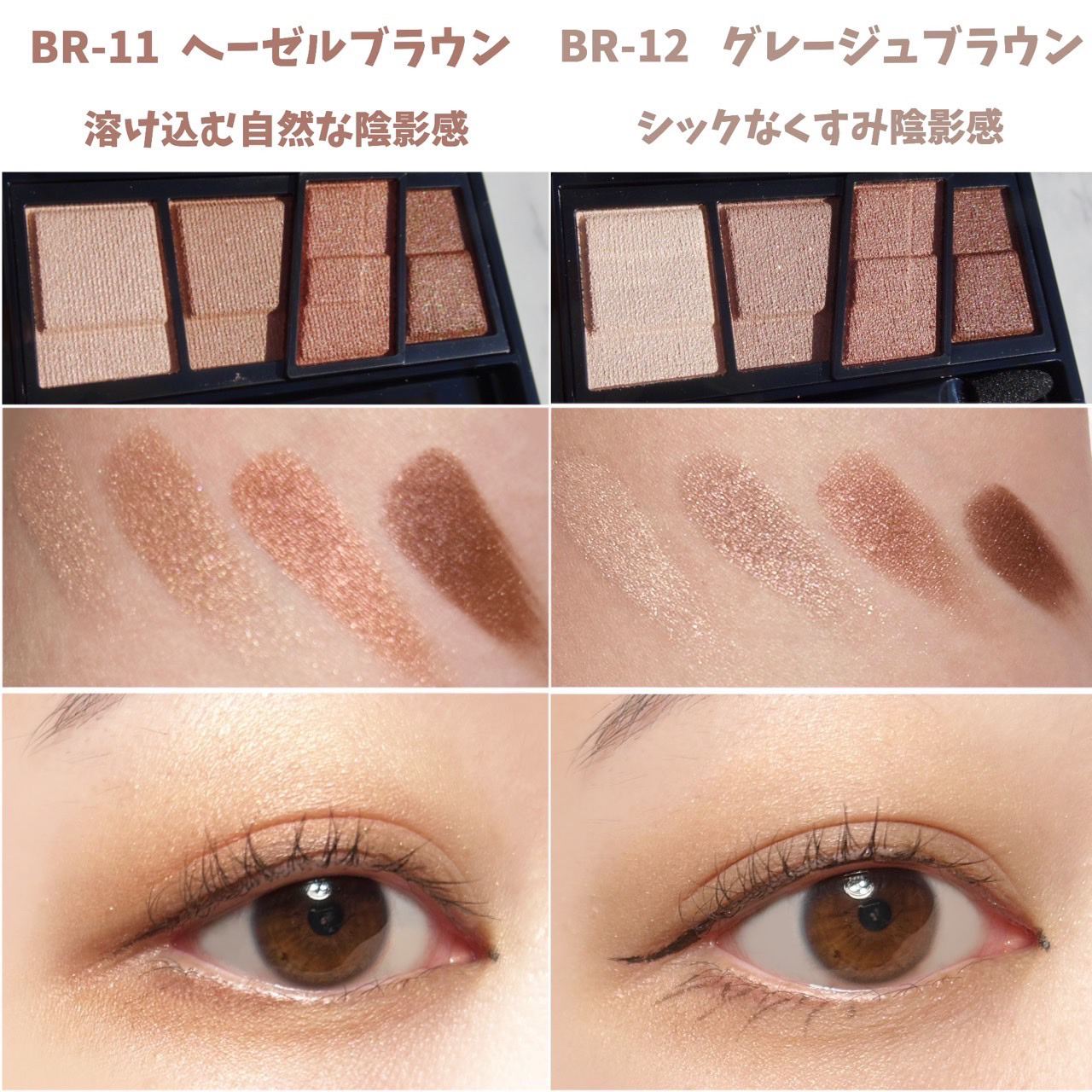 - カラーニュアンスシェードを目尻に入れるだけで目幅を大きく見せ※、抜け感のある明るい大きな目元に仕上るブラウンアイシャドウ。 ブラウン×カラーニュアンスの4色セット。※メイクアップ効果