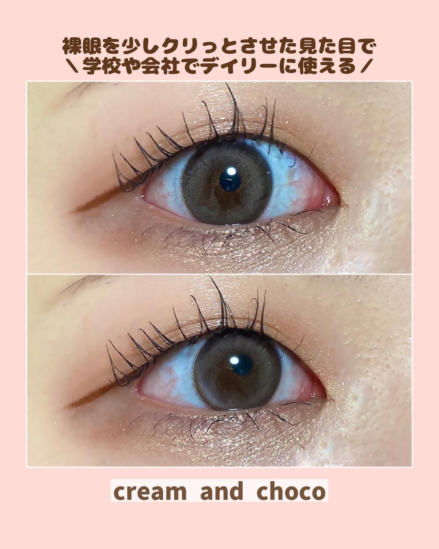 自然なチョコ色のカラコン ! ほのかに輝く濃いブラウン色が私の目のような自然さを演出します💛 サークルラインが瞳孔を掴んでくれて、深くて鮮明な瞳を作ってくれますよね(≧∀≦) 着心地も楽で目の乾きにも不便ZERO🍀