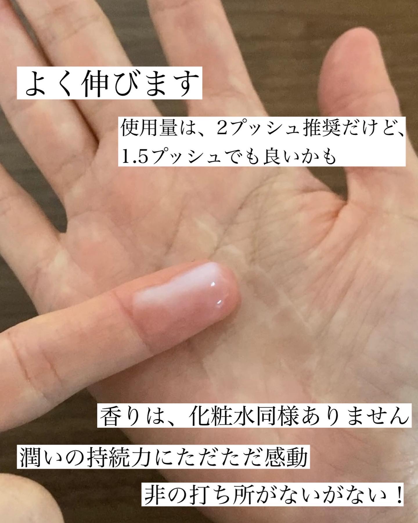 | テクスチャーは少しとろっとしてて、肌に馴染ませるとすーっと馴染むよ♡ | 詳細を見る |