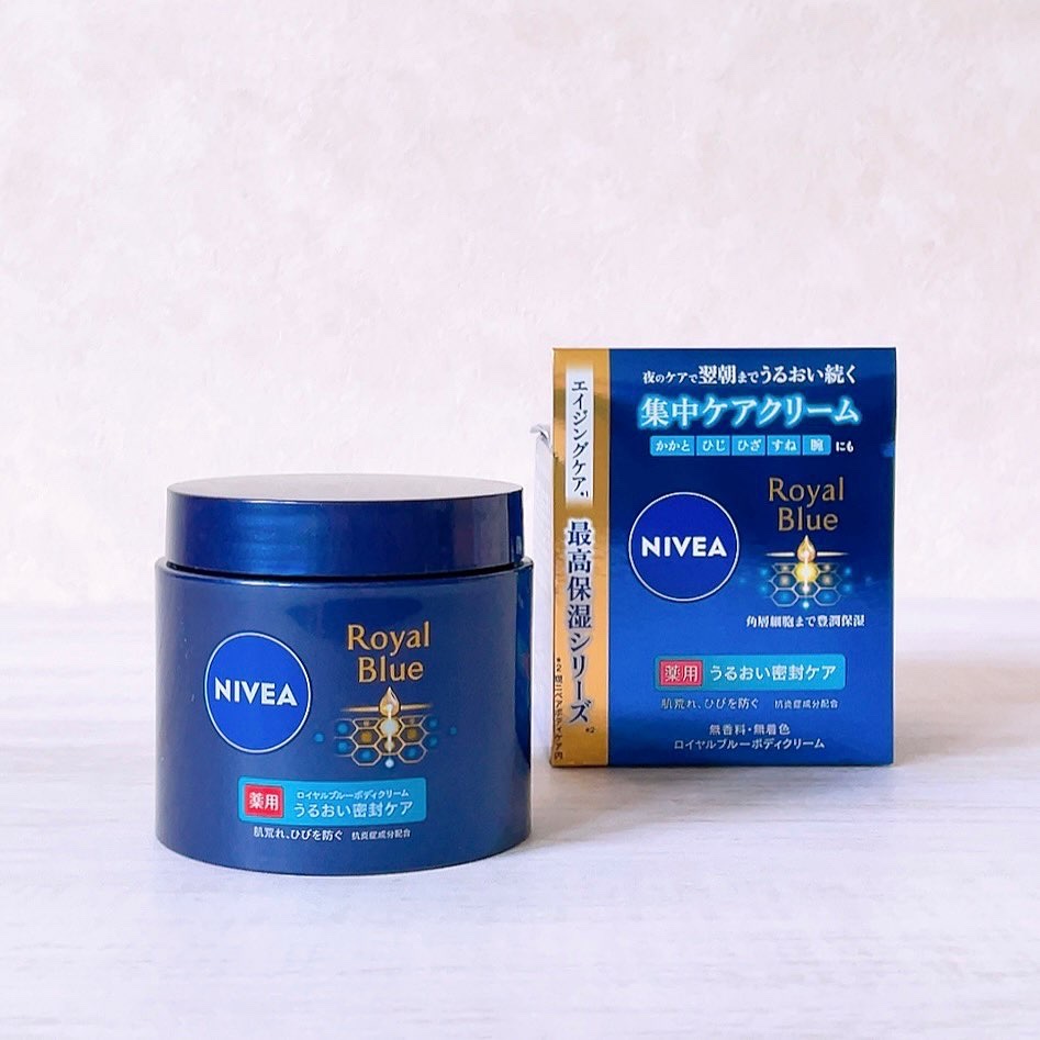 ニベアロイヤルブルーボディクリームうるおい密封ケア【医薬部外品】ニベア花王様から頂きました💕◎商品説明ふわっとした質感の濃厚クリームが、乾燥によりごわつき・かさつきがちな肌にすっととろけるようになじみ、肌荒れ、ひびを防ぎ、しっとりやわらかな肌...