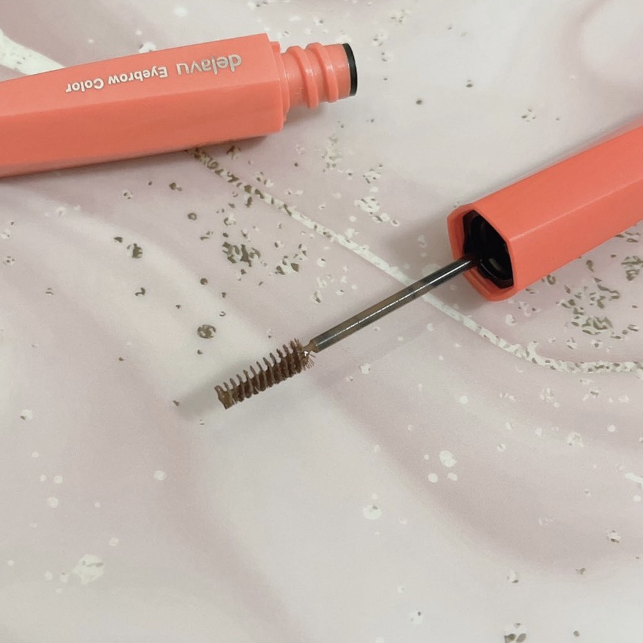 1本1本色づき固まらない「フィルム眉カラー」 塗りやすい極小ブラシで簡単垢抜け✨ デジャヴュ独自の薄膜フィルムを採用。 毛がパリッと固まらず、タバやダマのないふんわり自然な眉に。 フィルムタイプで速乾性が高く、皮脂・汗・こすれに強いのに、お湯だけで簡単に落とせます✨