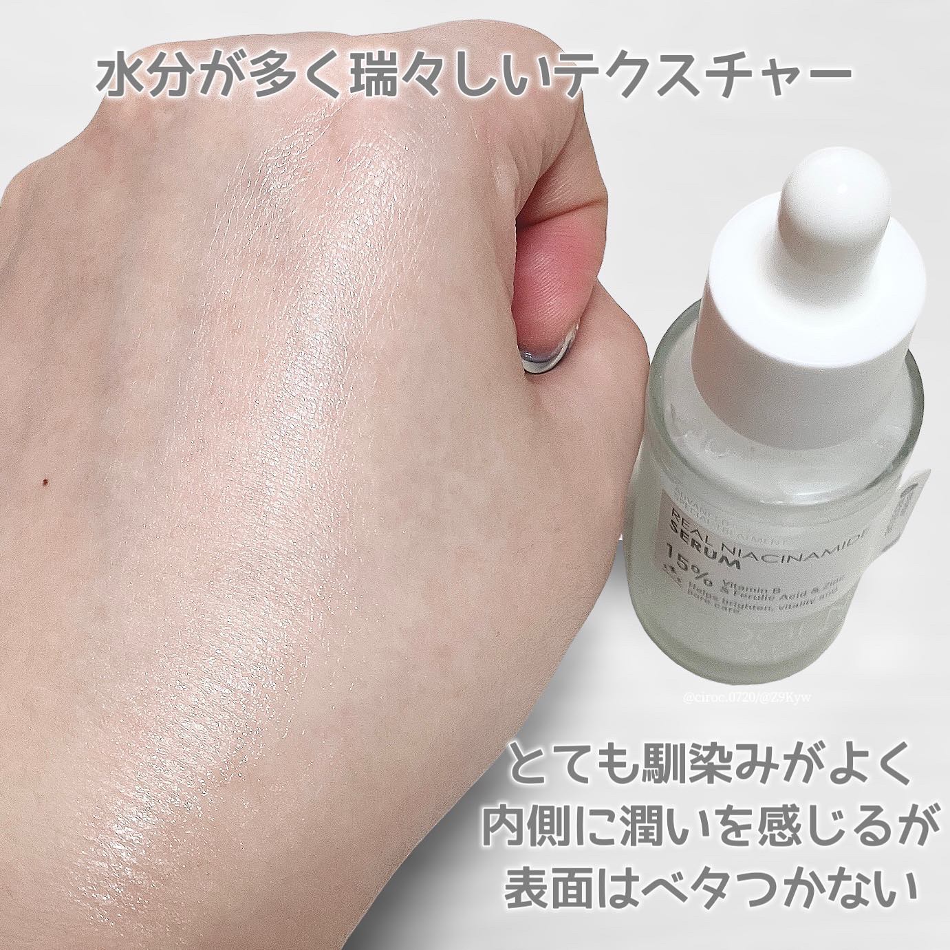 リアルナイアシンアミド15%セラムは、乳白色でほんの少しとろみのある、さらっと伸ばせてすーっと浸透*2するセラム💡´- ナイアシンアミド高配合*3で、肌のくすみ*1をケアすると共に広がった毛穴*1もケアしてくれるのだそう🙆🏻♀️✨ 肌になじませるとすーっと浸透*2する感覚が気持ち良くて、個人的にすごく気に入ってます❣️