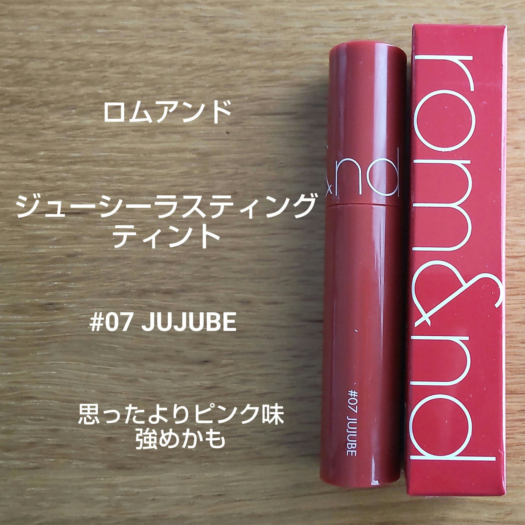 rom&nd⧉ザジューシーラスティングティント⧉21GRAPEBOMB⧉ジューシーラスティングティント⧉07JUJUBE✼••••✼••••✼「ザ」が付いてるのと付いてないジューシーラスティングティント何が違うのか、使ってみてもいまいちわから...