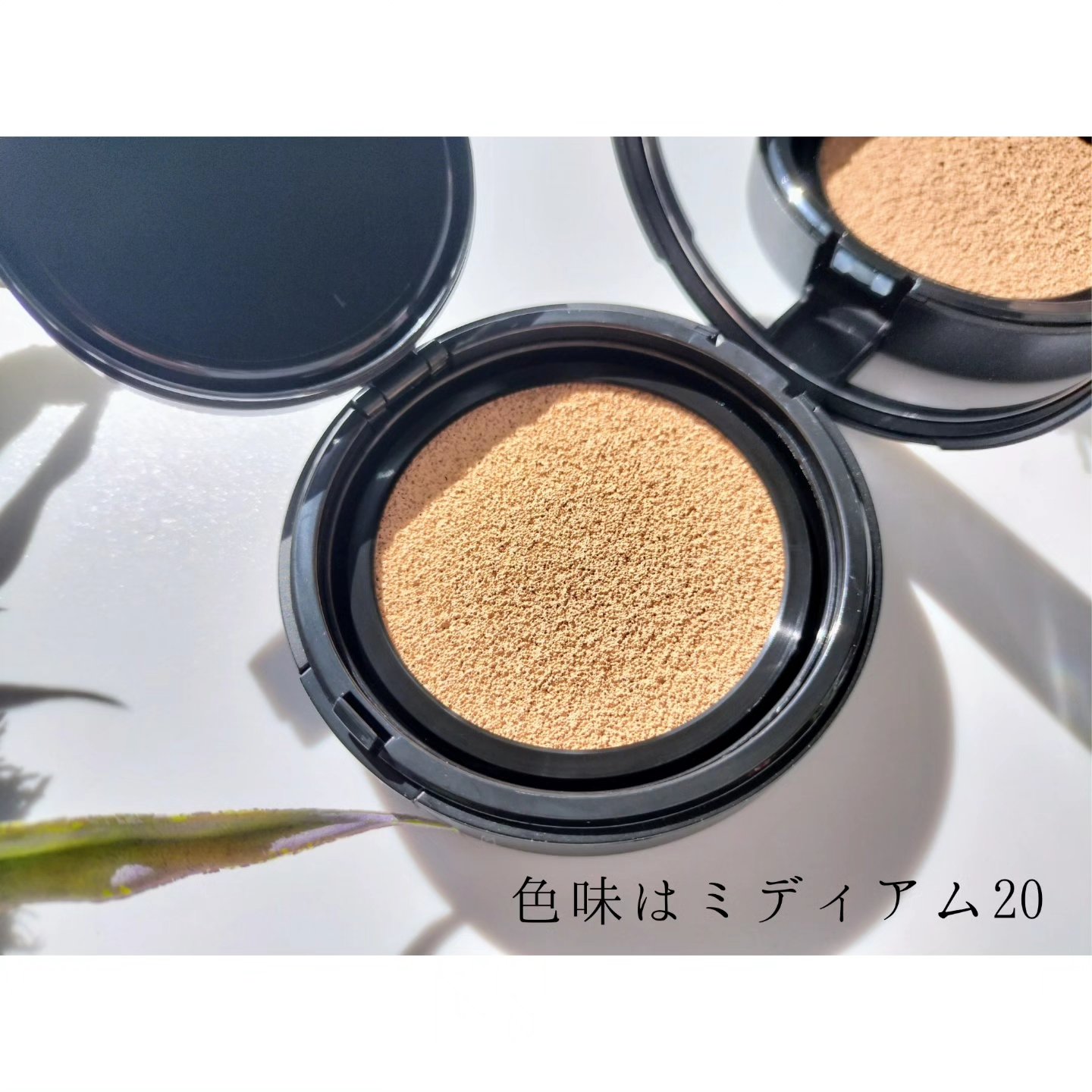 こちらはUVケアも◎ セッティングも簡単に装着できます😁 このブラック色したシンプルデザインの容器も素敵ですよね♡ パフにトントン馴染ませて肌にのせて みると少ししか取っていないのに、つきがよいですね。みずみずしいテクスチャです。 トントンなじませて伸ばしていくと 厚塗り感を感じさせない使用感です。 パフには、ほんの少しつけて内側から外にかけてポンポンと伸ばしていくのが ポイント。 つい、クッションファンデはたっぷりに なっちゃうけどほんの少しで良い◎ そうするとむらなく均一に肌にのせる ことができるね🥺