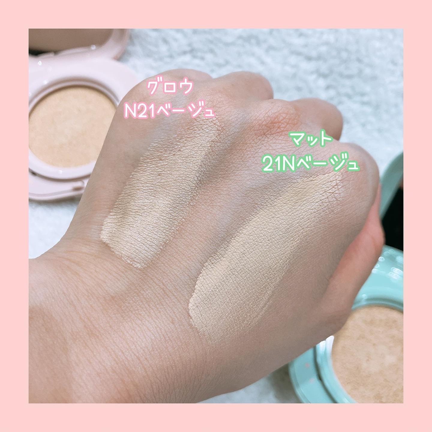 青ピンクのルビーとアクアみたいなグリッターかわいい🥺 パウダーはベージュはナチュラル素肌、ピンクは血色感UPでどっちも透明感だしてくれるからこれは即完売🥹 アットコスメオンラインでもちょこちょこ再販してるっぽい??