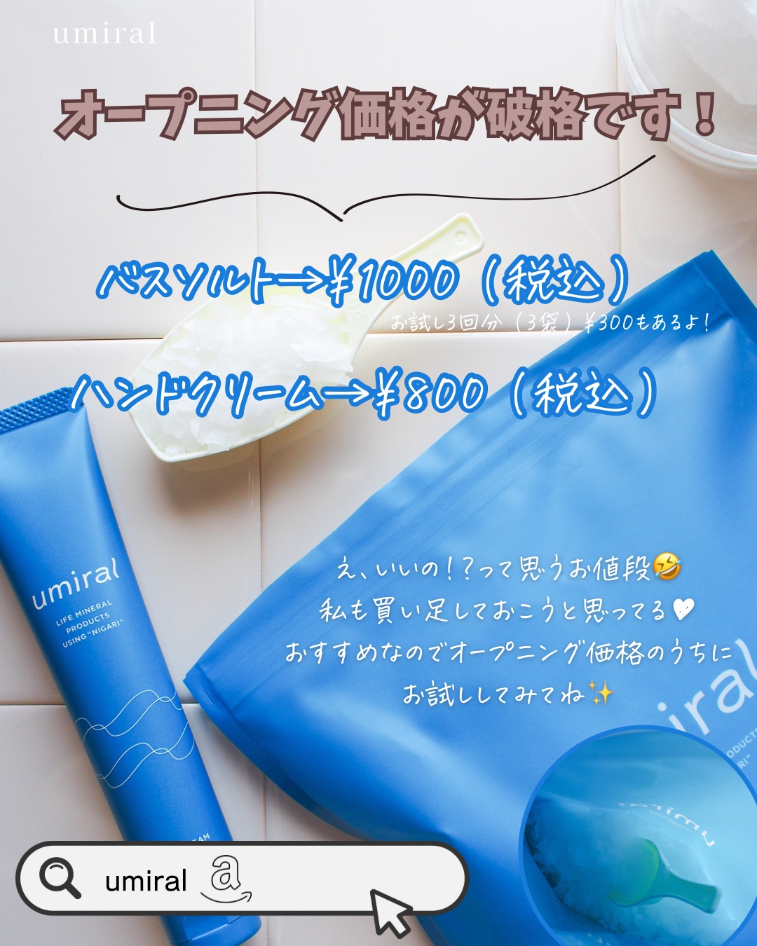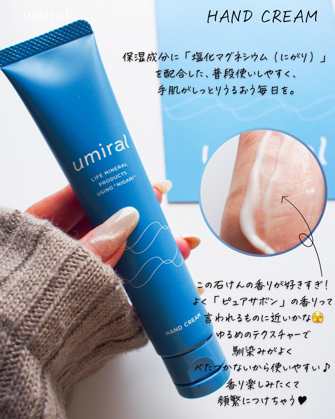 にがり成分にこだわったバスソルトとハンドクリーム お肌はうるおい身体は芯からポカポカに海のミネラルを浴びて良い眠りにつながるバスタイムを… このハンドクリームは自身の購入品ですお風呂上がりのような良い香りのハンドクリーム