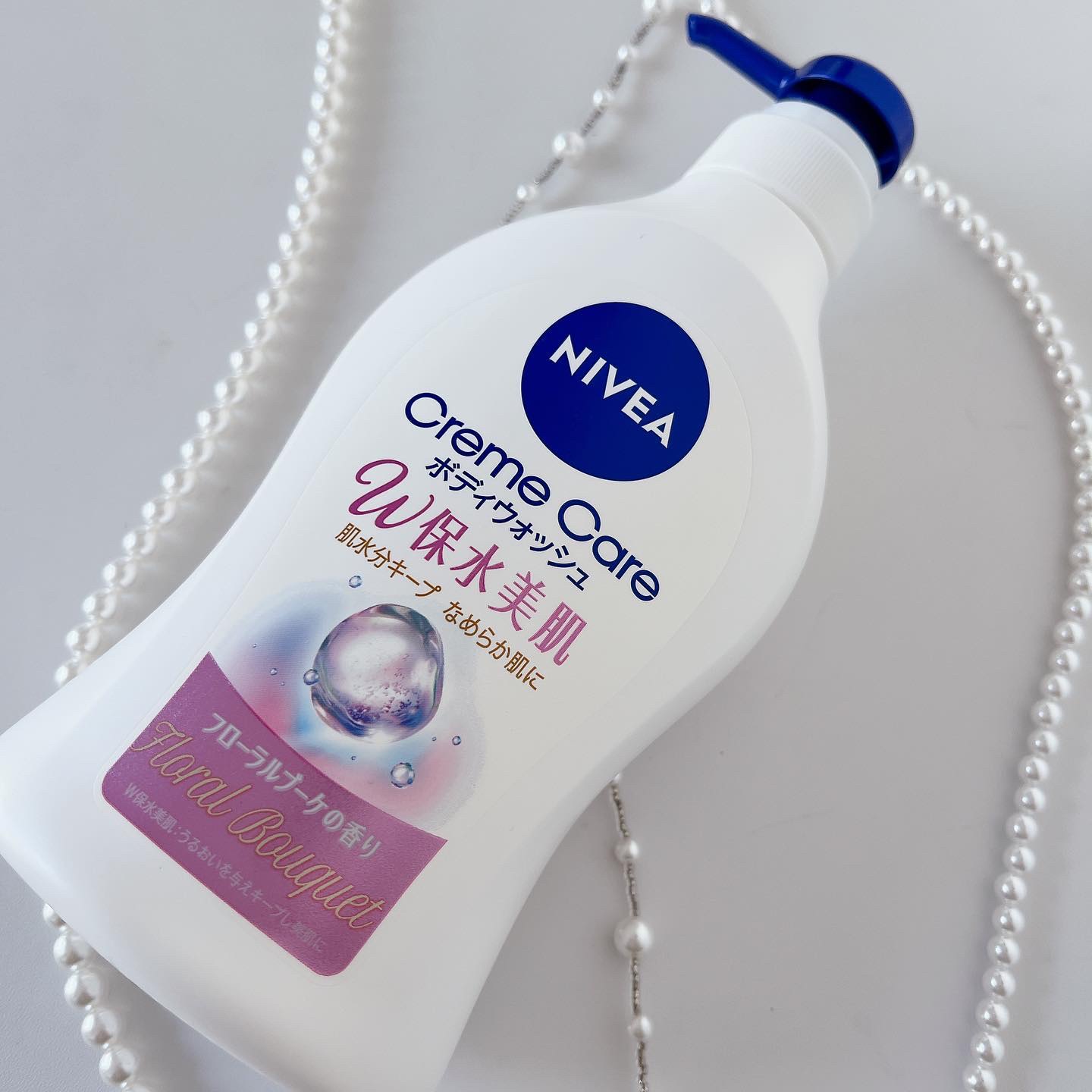 フローラルブーケは華やかさあるフローラルな香り、リラクシングソープは清楚感ある涼やかな石鹸の香り☺️ 泡立てると、少しねっとりした感じのエアリー泡に🫧 W保水美肌の「W」はヒアルロン酸とコラーゲンのこと! しっとり洗い上げてくれるボディウォッシュ✨ さすがニベアー!