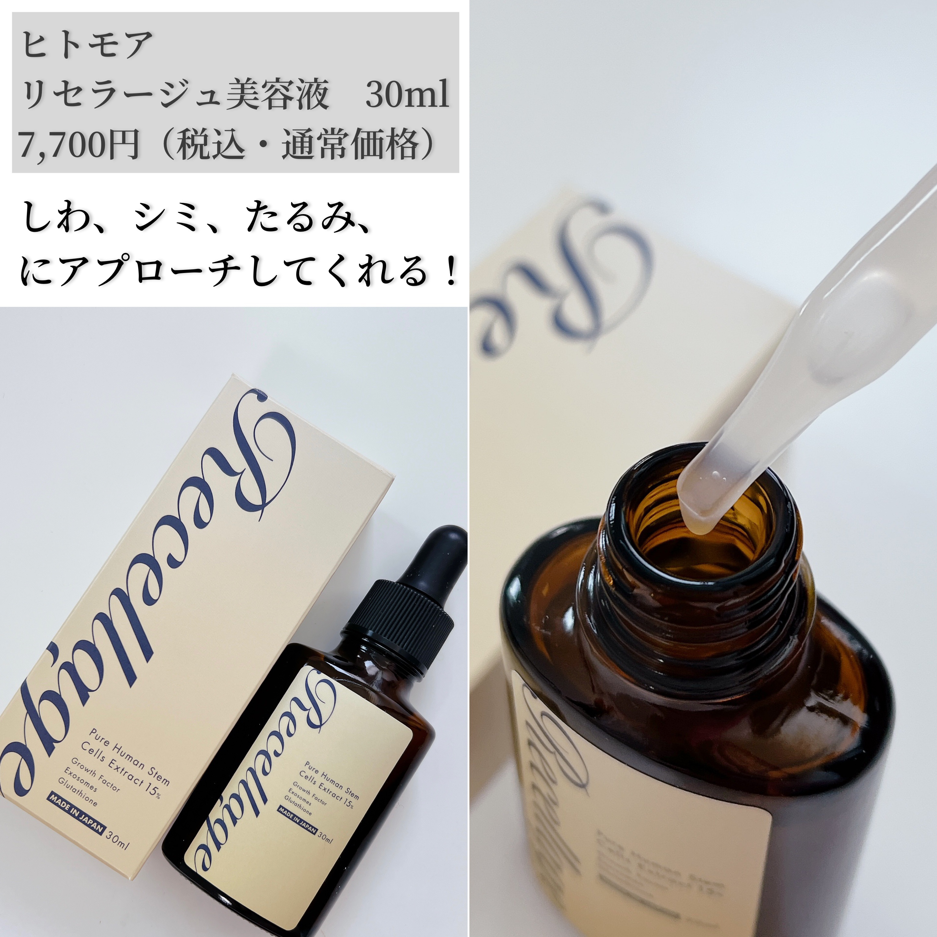 高濃度ヒト幹細胞培養液を15%も贅沢に配合している美容液とのこと。 紫外線ダメージやシミ・くすみケアが期待できるというアスタキサンチンも配合されているのだとか。 シワやたるみを改善する効果が期待できる美容成分で、レチノールよりも刺激が少なく、肌にはりを与えてくれると言われている「バクチオール」も配合という贅沢さ。