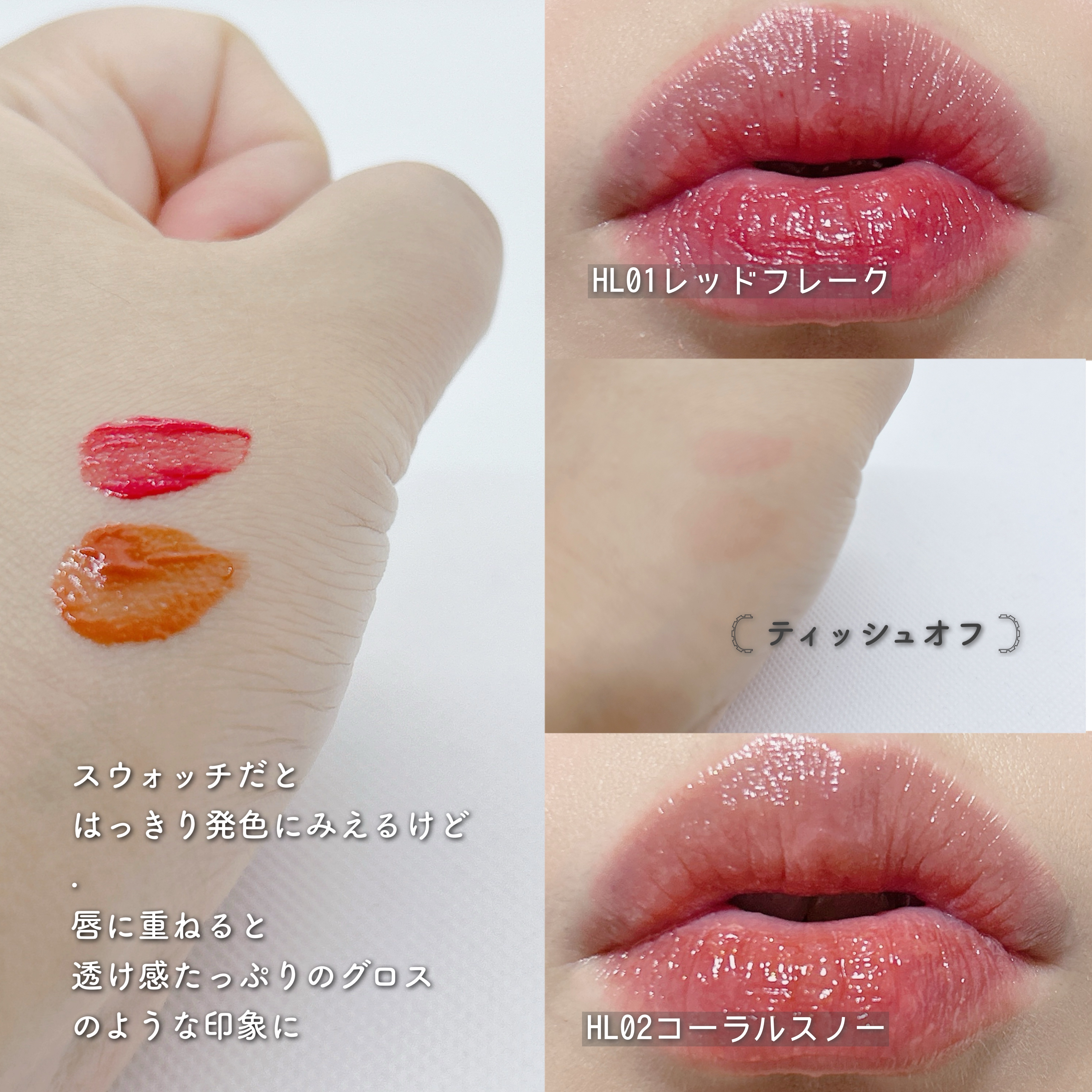 透明度の高いツヤと潤い 色持ちの良さ チラチラ輝くラメ入り ★HL03 モモグレープ🍑🍇 ほのかなレモン色パールできらきらと繊細に輝く 程よい血色感を与えるヌーディーなピンクカラー 可愛いんだけど!! 青み寄りの発色なのかな〜って思ってたんだけど、実際は少し黄みが気になる🤏🏻