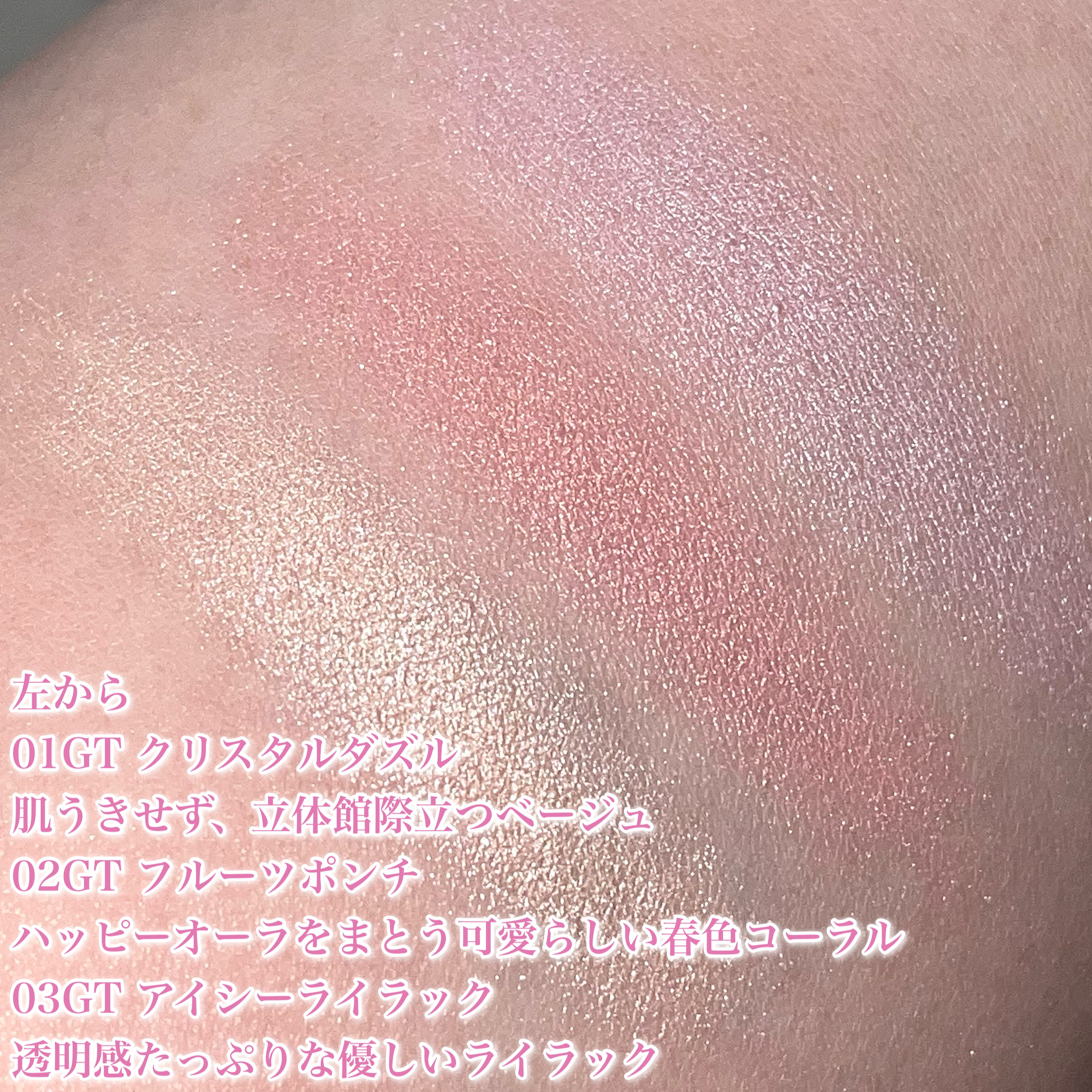 - ※11月下旬先行発売予定です。 ※4月以降定番導入予定です。 ジャストフォーミーパレット(別売)にセットできちゃう! 3つの質感✖豊富な色からえらべるフェイスカラー なめらかなパウダーがお肌に密着し、発色長持ち♡ 粉飛びしにくく、長時間ヨレにくい! 透明ケースに入れて単色でも使えます。 【GT】グロッシータイプ たっぷりのパールで、発光感のあるツヤ仕上がり♡ 単品でハイライトとしても! お手持ちのチークとの合わせ使いで、ニュアンスのチェンジもできます。 【PT】パールタイプ 繊細なパールで、にじみ出るようなツヤ感♡ しっとりとした質感で、透明感のあるタイプです。 【MT】マットタイプ サラサラな質感で、ふんわりとしたやわらかい発色♡ 肌に溶け込むように色づく、ナチュラルな仕上がりです。
