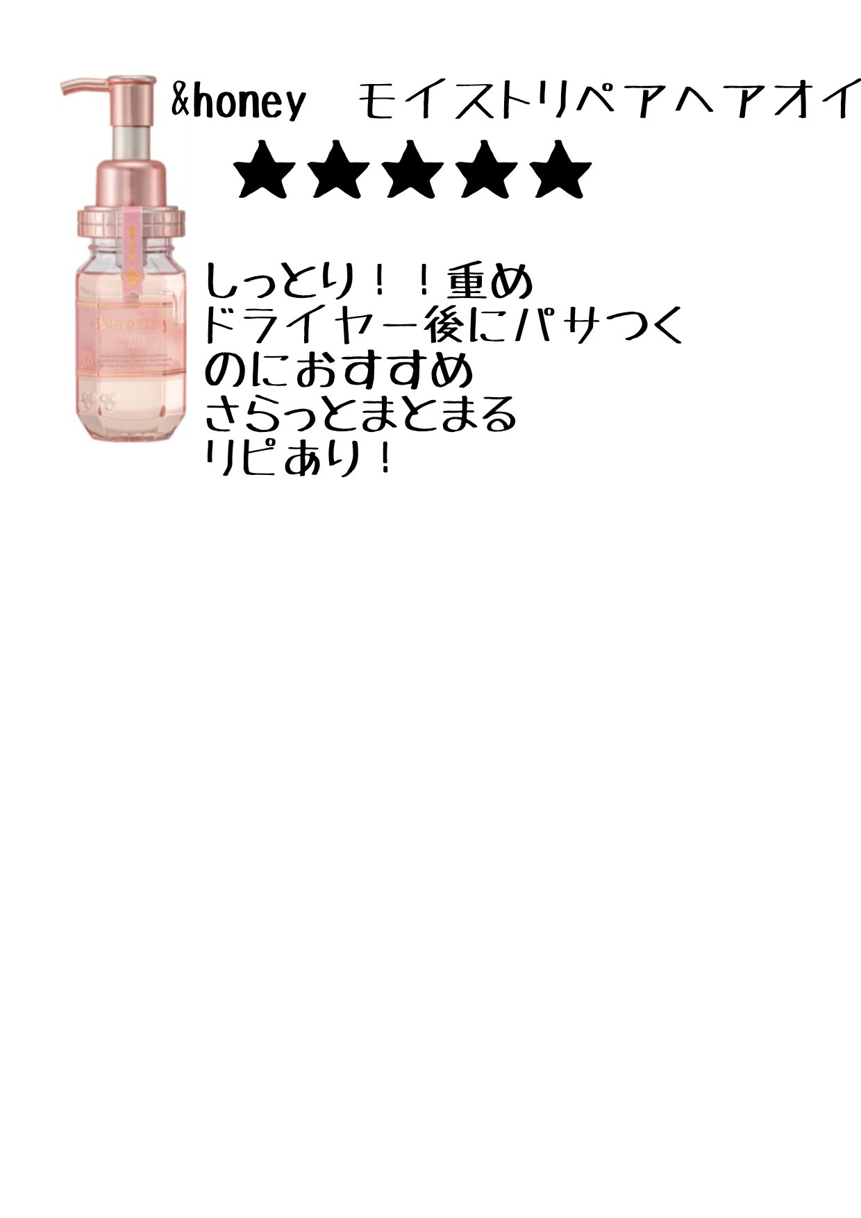 &honey &honey メルティ モイストリペア ヘアオイル 3.0 | 1,540円 |