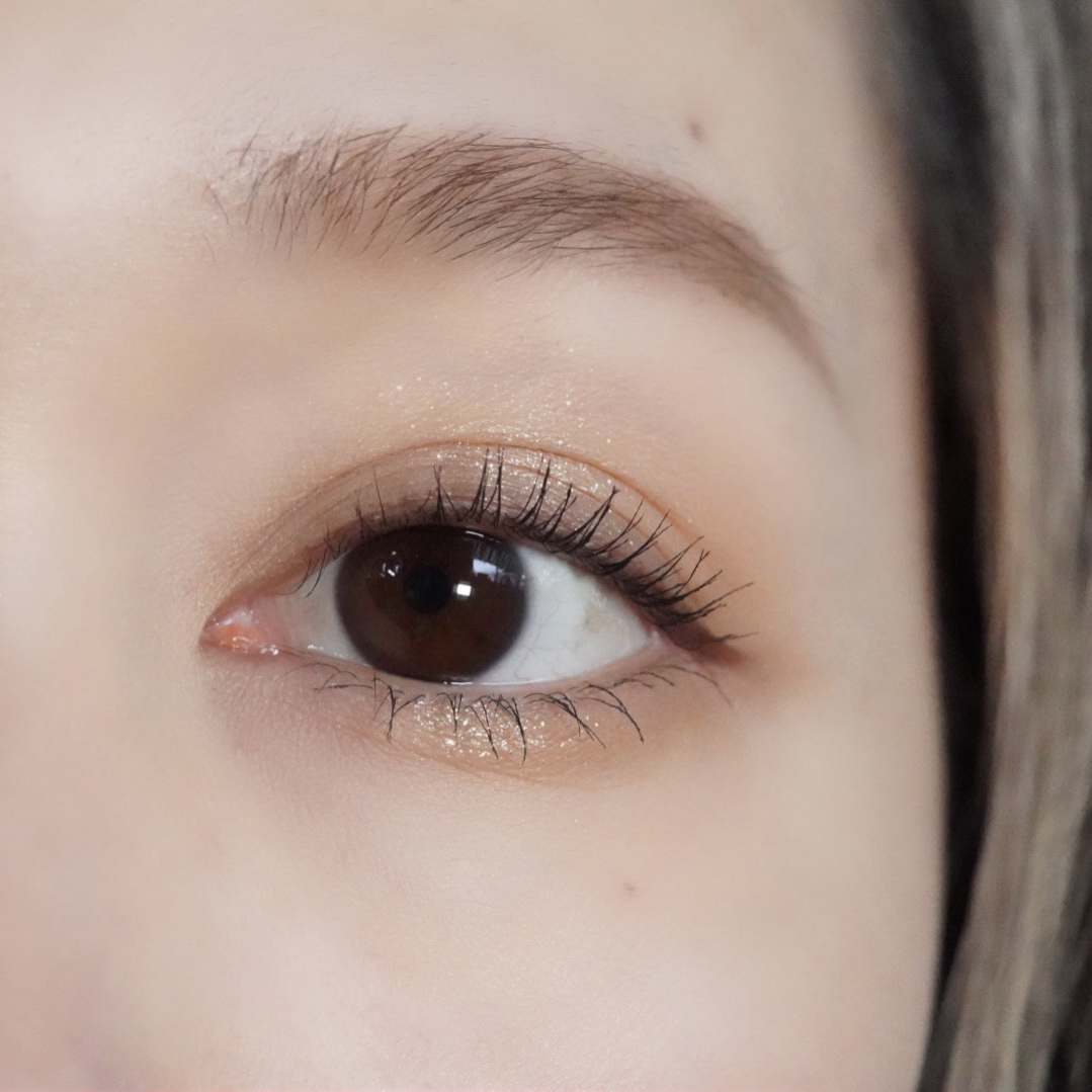 よくパレットのなかで明るいカラーをベースにまぶたに広く塗ることが多いのですが、パール感のあるカラーを避ける🙆♀️! パール感たっぷりの明るいカラーは涙袋に使うぐらい光を集めてぷっくり見せてくれるので、まぶたに広く使うと腫れぼったく見えがち😓 目元を明るくみせてくれたり、次に使うアイシャドウをぼかしやすくしてくれるけど、すっ飛ばしてメインのカラーを塗っちゃう✊🏻❤️🔥 涙袋にはたっぷり塗ってぷっくり見せる🙆♀️💕 シルキースフレアイズのマットタイプはすごく優れているな〜と感じました☺️💗 赤やオレンジなどは、入れすぎると腫れぼったく見えやすいので、見せたいカラーは下まぶた目尻にのせて色をたのしむ♡♡ パール感なしの透けマットだけじゃ物足りない… そう感じさせない華やかなラメが左上に入っているので黒目上と涙袋にのせるとすごく可愛い仕上がりに😍! 厄介な左右差のお陰でマットアイシャドウが好きになりました😌💕
