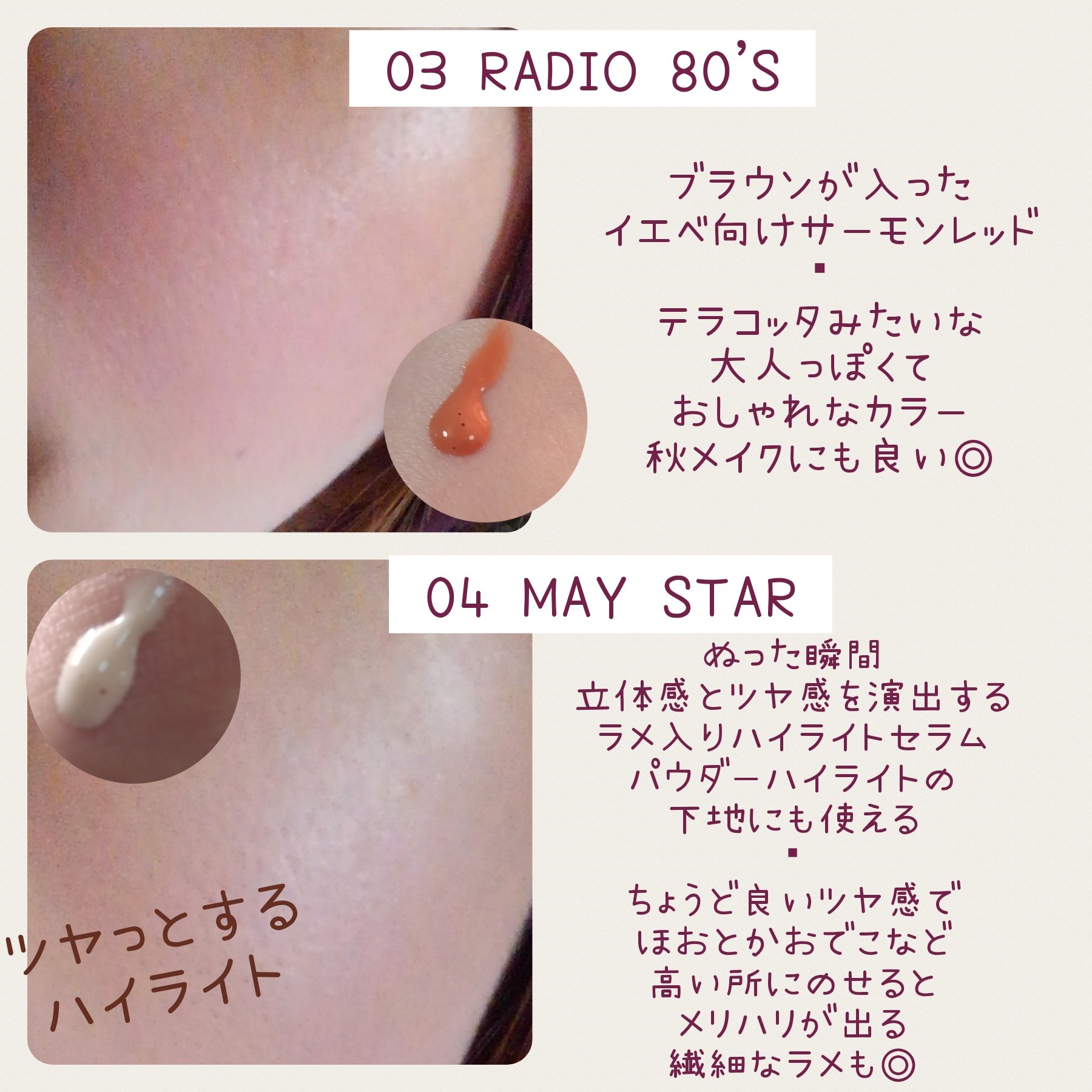 美容液水彩チーク▼LoNly 3sカラーセラム 03Radio80’s ¥1,980-4色展開で販売している3Sカラーセラムから03Radio80’sを紹介するよ(*´∀`*)Radio80’sはブラウンがかった大人っぽい落ち着きのあるサーモ...