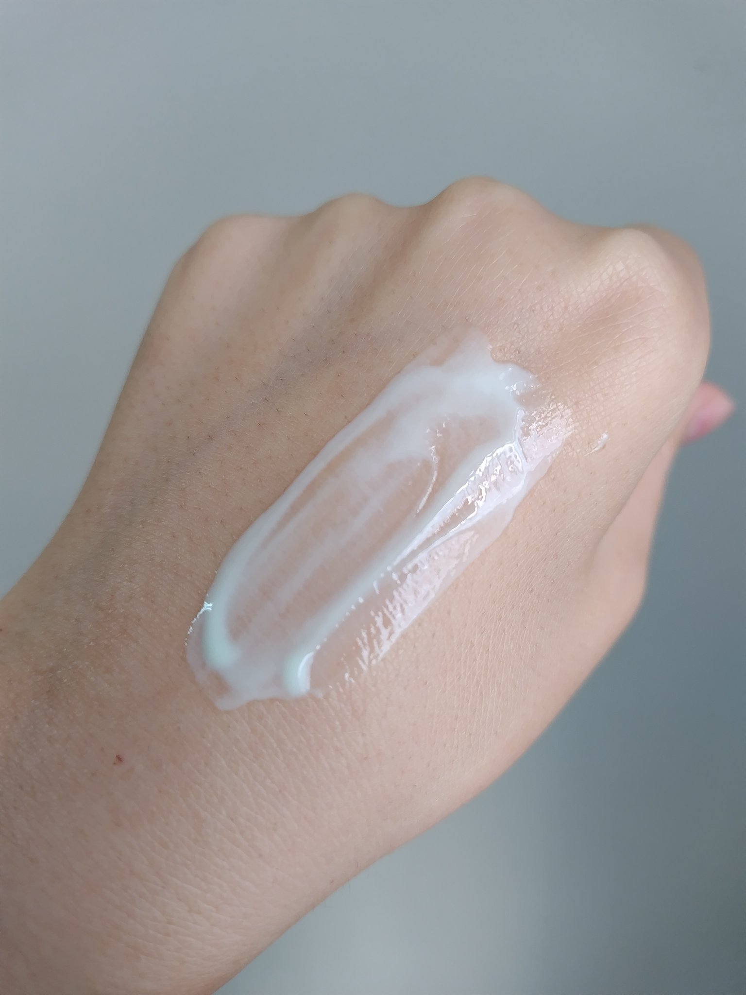 かなり緩めなグリーンのクリームです。水分感が凄くて、塗った直後はベタつきますが、少し時間を置くと馴染んですべすべになります。 グリーンの下地ですが、すごく伸びが良いので赤み補正効果はあまり感じられませんでした。(全く感じないわけではないです) ほんのりグリーンアップルの香りがしますが、苦手な人もいるかもしれません。 テクスチャーはニベアの日焼け止めとほとんど同じ。 下地と日焼け止めを兼ねているので、スキンケアの後これ1本で済むのが嬉しいです😊 サッと塗れて時短になるのも良いところ。 軽めの乾燥肌、混合肌、普通肌の人におすすめです! クリーム自体は水分が多いですが、仕上がりはさっぱりめなので重めの乾燥肌さんは時間が立つと乾燥しそう。 トーンアップや赤み補正の効果を求めない日、ナチュラルにメイクしたい日におすすめの下地です!