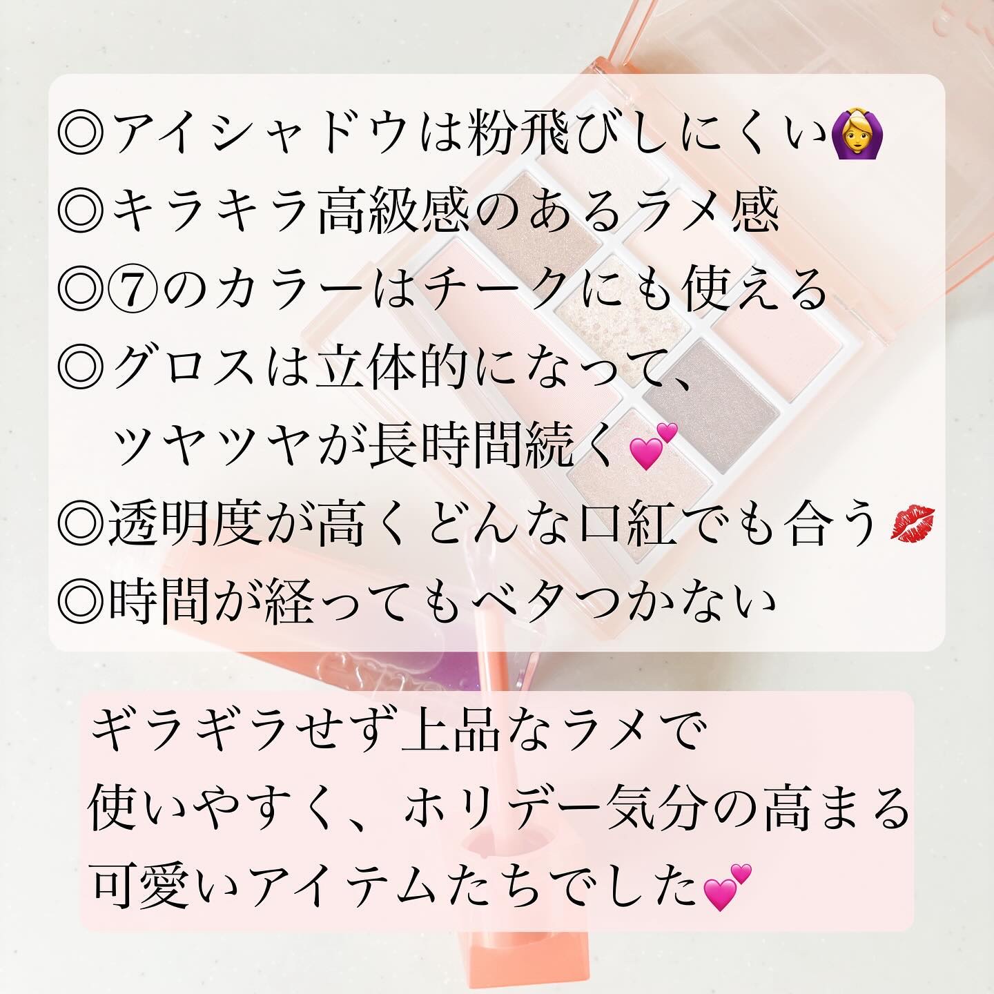 | とにかくグリッターの煌めきが凄くって、 このパレット使うだけで血色感もツヤラメも仕上がるのがかなり良い◎ | 詳細を見る | ||
